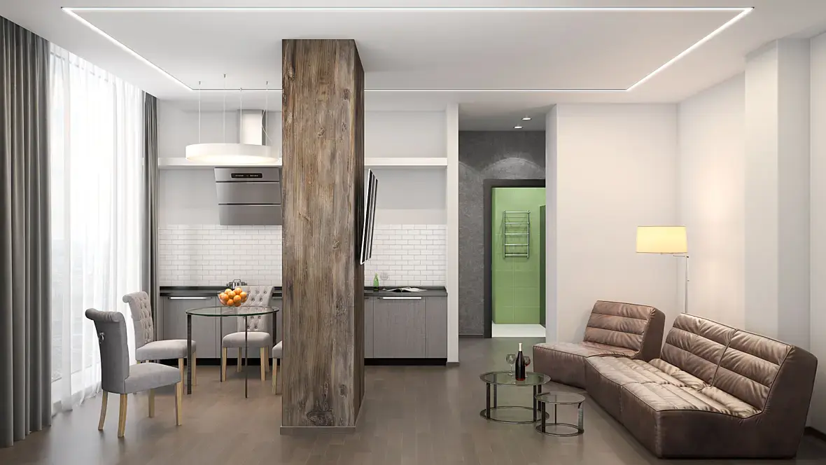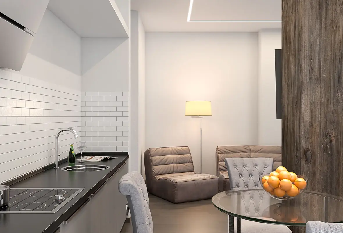 3. Можно добавить элементов наполнения: сервировка стола, подушки на диван.