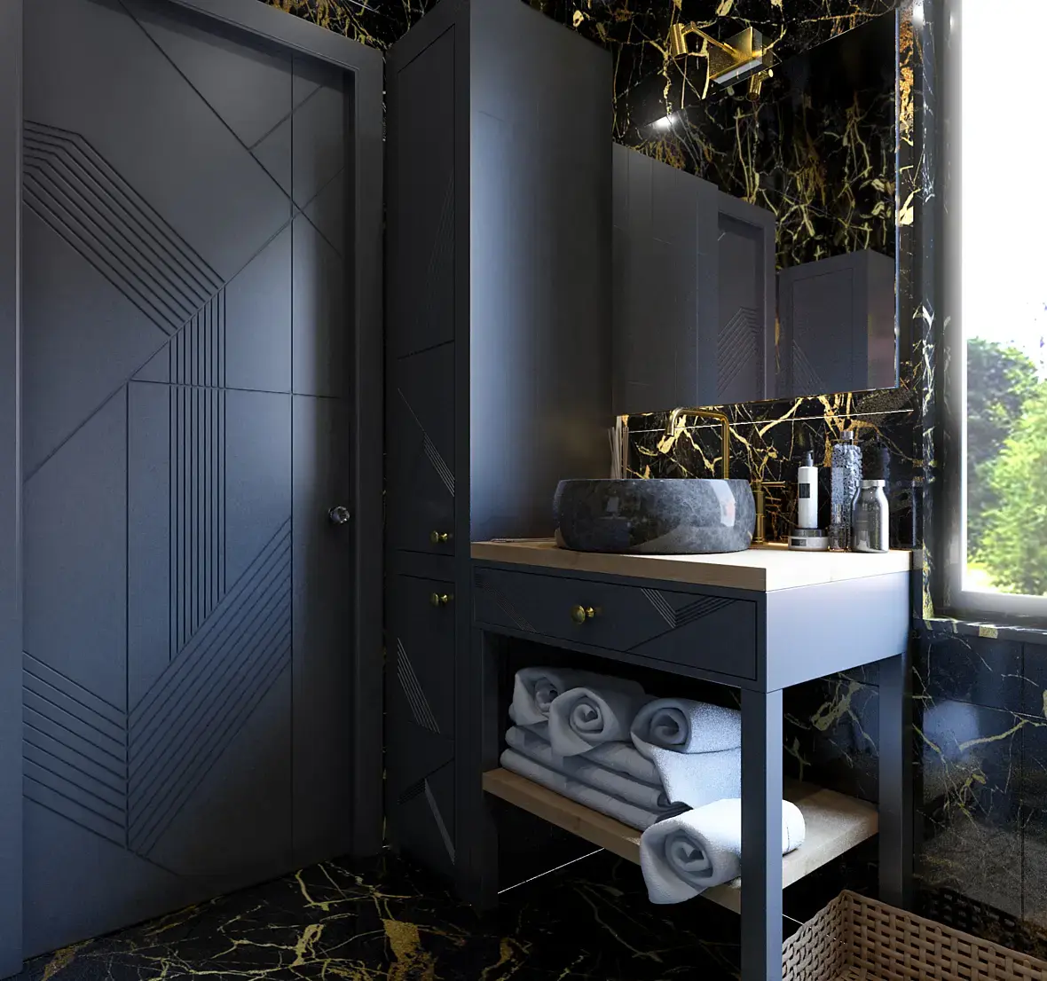 В серый цвет покрасили все - мебель. двери,сантехнику.
