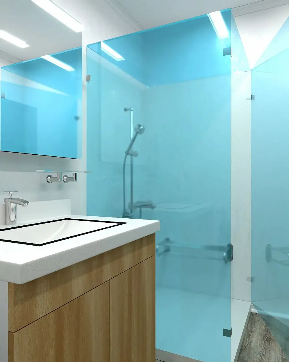 Уважаемые гуру, выкладываю на ваш суд 2-ю версию ванной. В ней я учел все рекомендации, а также изменил планировку и провел небольшую пост обработку. Картинки ниже.