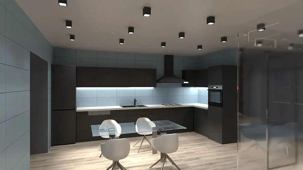 Чтобы вам тяжело не было, сейчас вставлю картинки)) Но сначала повторю легенду, для кого этот интерьер:"Молодая девушка, 24 лет, недавно закончила университет, и теперь работает. Живет одна, домашних животных не имеет. Работает инженером-конструктором в сфере ракетостроения. При обсуждении интерьера она высказала пожелания к холодному минималистскому интерьеру, который был бы упорядочен, и напоминал космическое пространство, так как космос это ее мечта с детства. Так же она пожелала чтобы в интерьере были использованы самые современные материалы, и чтобы все ощущение интерьера создавало ощущение чего-то нового, ультра современного."