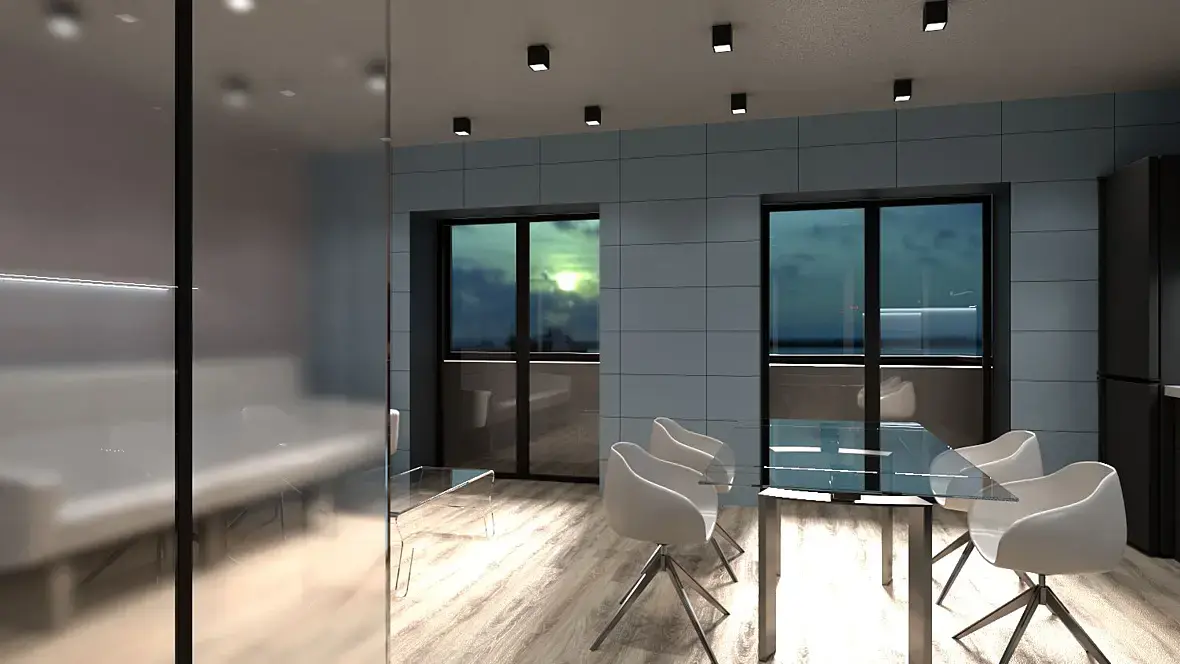Да, ещё, очень существенно, на стеклянных стенах, на уровне глаз, обязательно пустить лёгкую полу-прозрачную графическую строчку, которая будет отражать и преломлять свет. Иначе днём в задумчивости или ночью спросонок, снесет эти стены да ещё травмируется. Это из личного опыта. Можно пустить айти кодировку, или рыбок, или листочки. На ваш вкус.