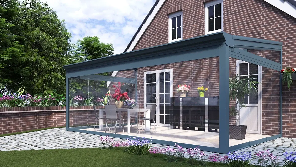 Второй кадр очень зажат со всех сторон, соотношение пространства сверху/снизу должно быть обратным. Некрасиво режутся двери, да и вообще с такой точки кажется, что двери выше крыши террасы. Надо ставить камеру ниже и постараться как-то увидеть верхнюю плоскость. Если ракурсом этого добиться не получится, то значит это должно быть явно нарисовано тенями на фасаде от невидимой в кадре конструкции крыши.