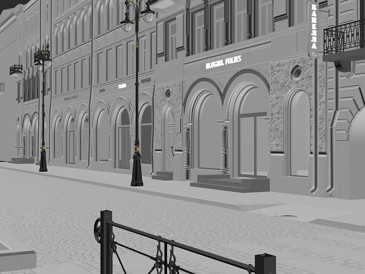 В предстоящем добавить детали- ковку, фонари, витрины. Там должны быть манекены, хотя с этого ракурса это почти не видно smiley-smile.gif