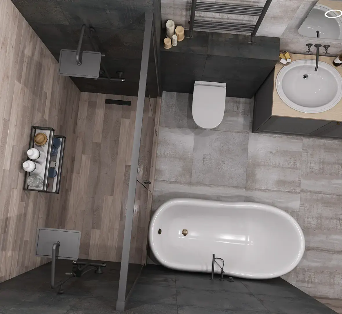 Пока жду правки по первому проекту, (там кстати все помещения отрисовал, скоро выложу на Ваш суд тоже), работаю над первым моим лофтом. Как мне кажется не совсем вышло передать настроения лофта, что бы темно и камерно, но комфортно. В общем, буду благодарен за конструктивную критику.