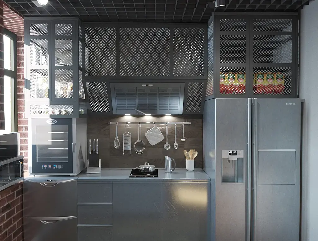 По поводу света соглашусь с @lyubov_zv - окно можно приглушить ради избежания пересвета (можно было бы поиграться с этим и сделать из окна холодный неяркий вечерний свет, а в кухне - теплый яркий)