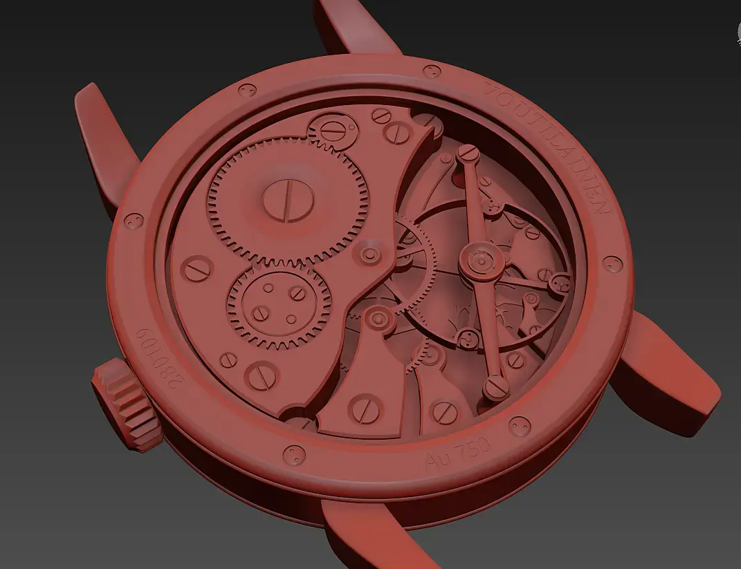 Здравствуйте, коллеги.Решил в свободное время замоделить наручные часы. Понравилась модель Voutilainen SIHH 2018 Хочу сделать предметку с крупными планами. Моэтому по максимуму делаю всё геометрией,в том числе гильоши на циферблате, так же механизм (он закрыт стеклом в этой модели).Пока нахожусь вот на этом этапе: