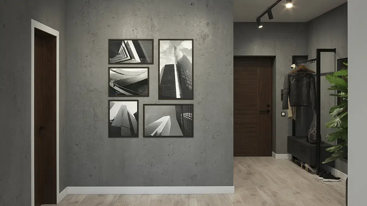 В прихожей, ванной и раздевалке очень хмуро, прям совсем безрадостно. Выключатель этот белый в черной рамке ещё... :)
