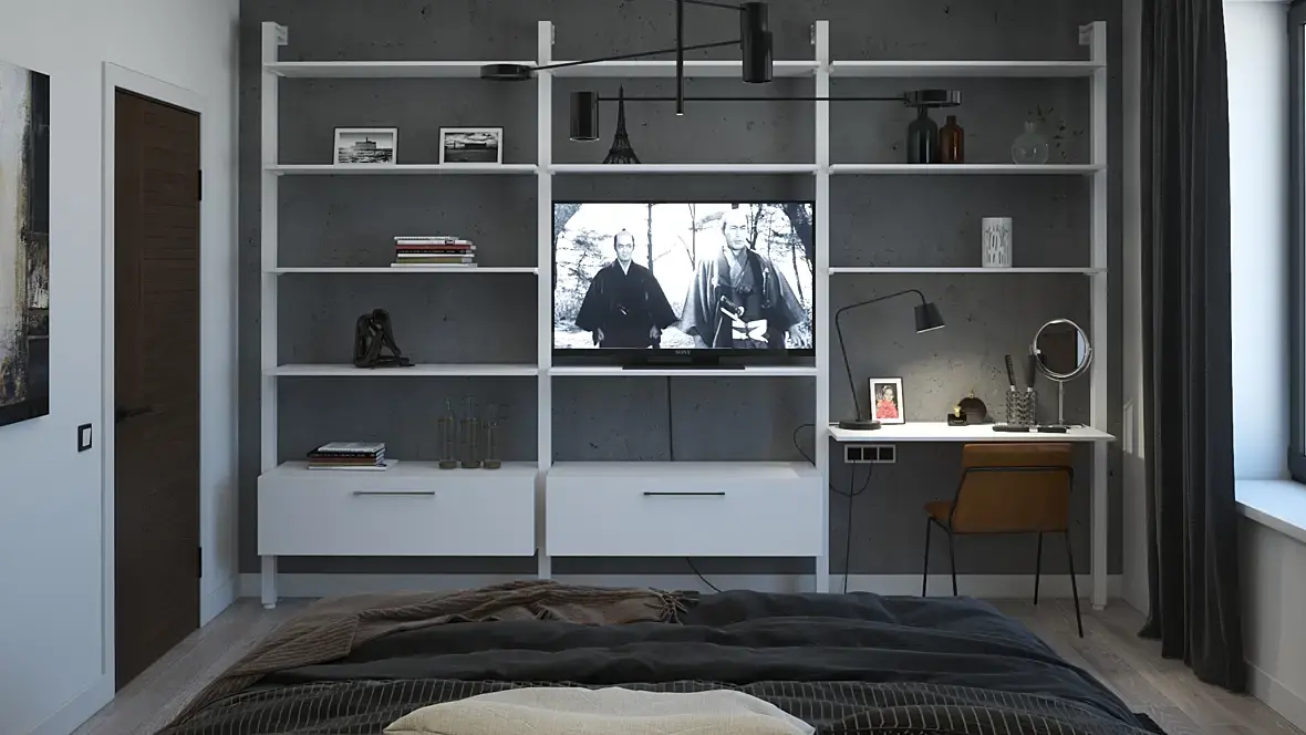 Добрый день! Прошу критики по визу. Дизайном не планирую заниматься, но его тоже можно покритиковать. Раньше рисовал простую корпусную мебель и немного для души иногда. Решил попробовать интерьер. Накидал произвольную планировку, насмотрелся картинок в сети и вот такое придумал. Признаюсь, возился долго, для будущего портфолио делал. Специально выкладываю все ракурсы, чтобы и их покритиковали.