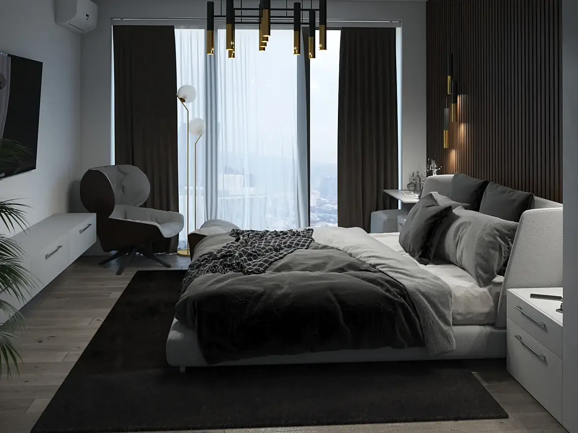Приветствую, коллеги! Опять рисую интерьер для портфолио. Сначала хотел придумать прямо совсем лофт, но не справился - начал получаться какой-то, простите, бомжатник, пришлось его облагораживать) Теперь это вроде контемпо с элементами лофта...