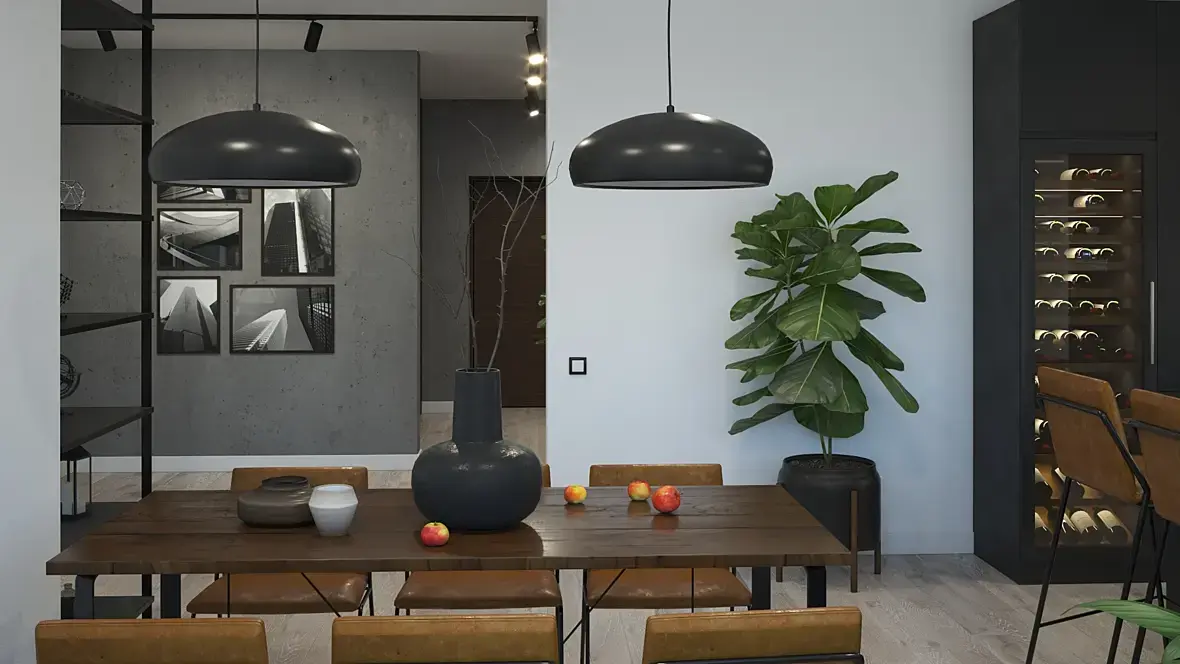 Приветствую, коллеги! Опять рисую интерьер для портфолио. Сначала хотел придумать прямо совсем лофт, но не справился - начал получаться какой-то, простите, бомжатник, пришлось его облагораживать) Теперь это вроде контемпо с элементами лофта...