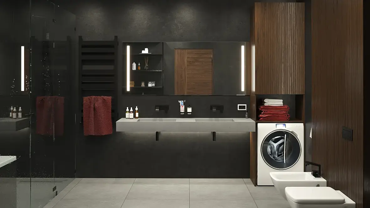 Добрый день! Прошу критики по визу. Дизайном не планирую заниматься, но его тоже можно покритиковать. Раньше рисовал простую корпусную мебель и немного для души иногда. Решил попробовать интерьер. Накидал произвольную планировку, насмотрелся картинок в сети и вот такое придумал. Признаюсь, возился долго, для будущего портфолио делал. Специально выкладываю все ракурсы, чтобы и их покритиковали.