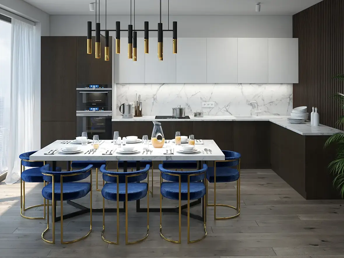 1. Большинство ракурсов фотограф заснял в прыжке, видимо?) Высоковато, даже неуютно смотреть. Особенно ракурсы на диван и обеденный стол.