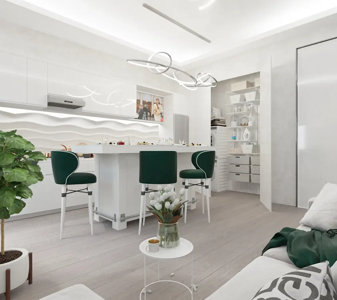 | Мат пола - похоже, не просто шумит, а состоит из шума. Свет одинаково пересвеченно-белый - поэтому и картинка выглядит разбеленной и не интересной. Дверца, прикрывающая стиралки-сушки снизу подернута какой то радиацией. |