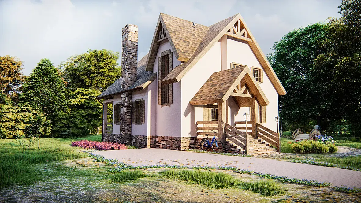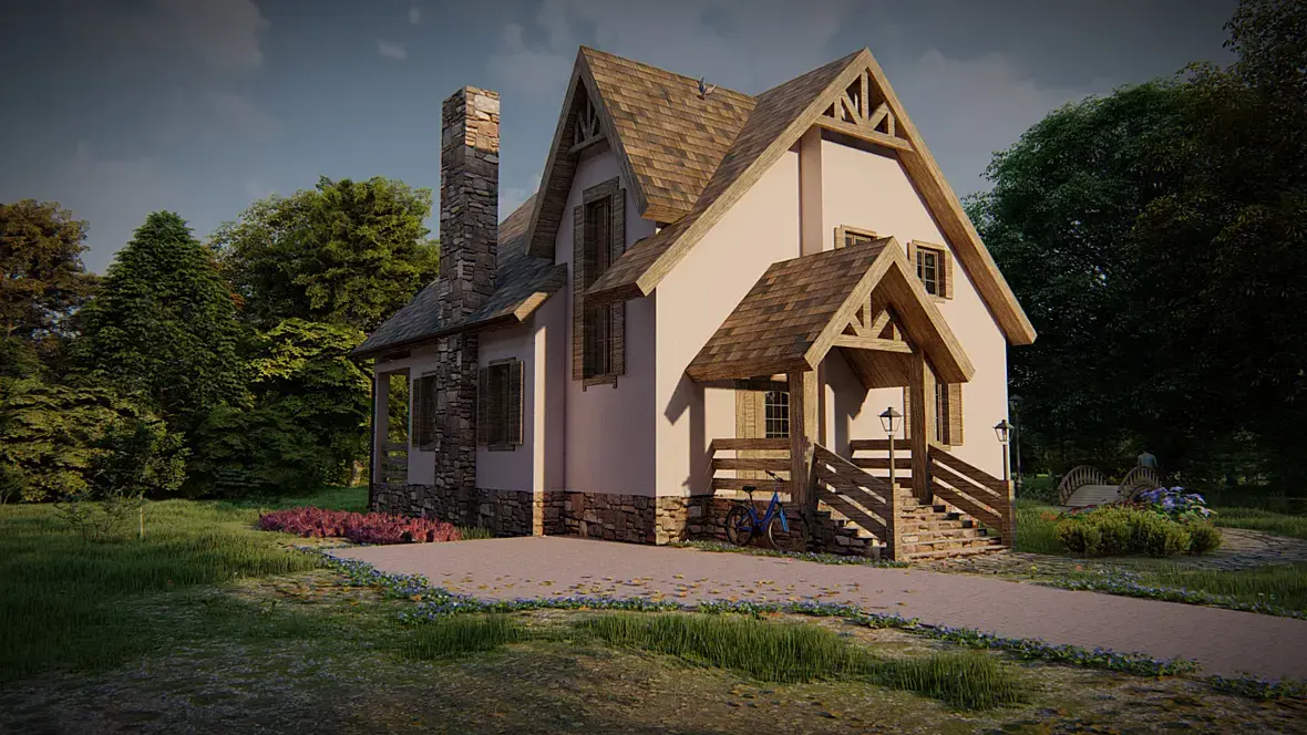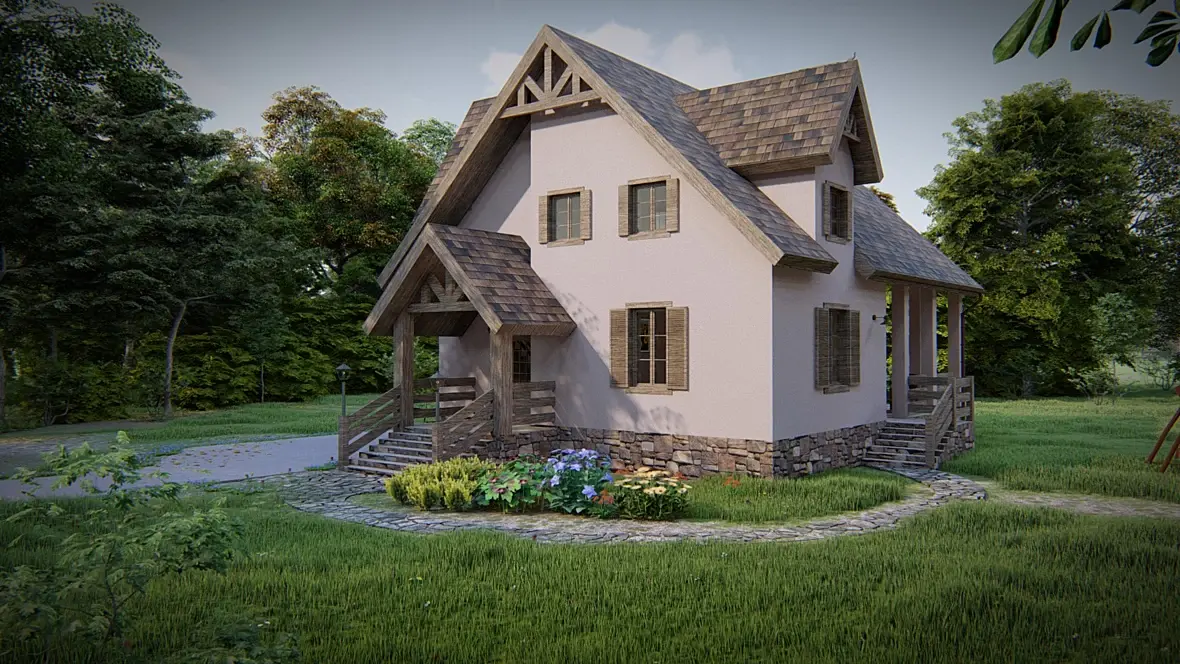 Здравствуйте. Это моя первая работа в 3D. Визуализация по эскизу от архитектора. Моделировал дом Archicad+3dsmax. Сцену собирал и рендерил в Lumion8. Есть также короткое видео-анимация с этой сценой: