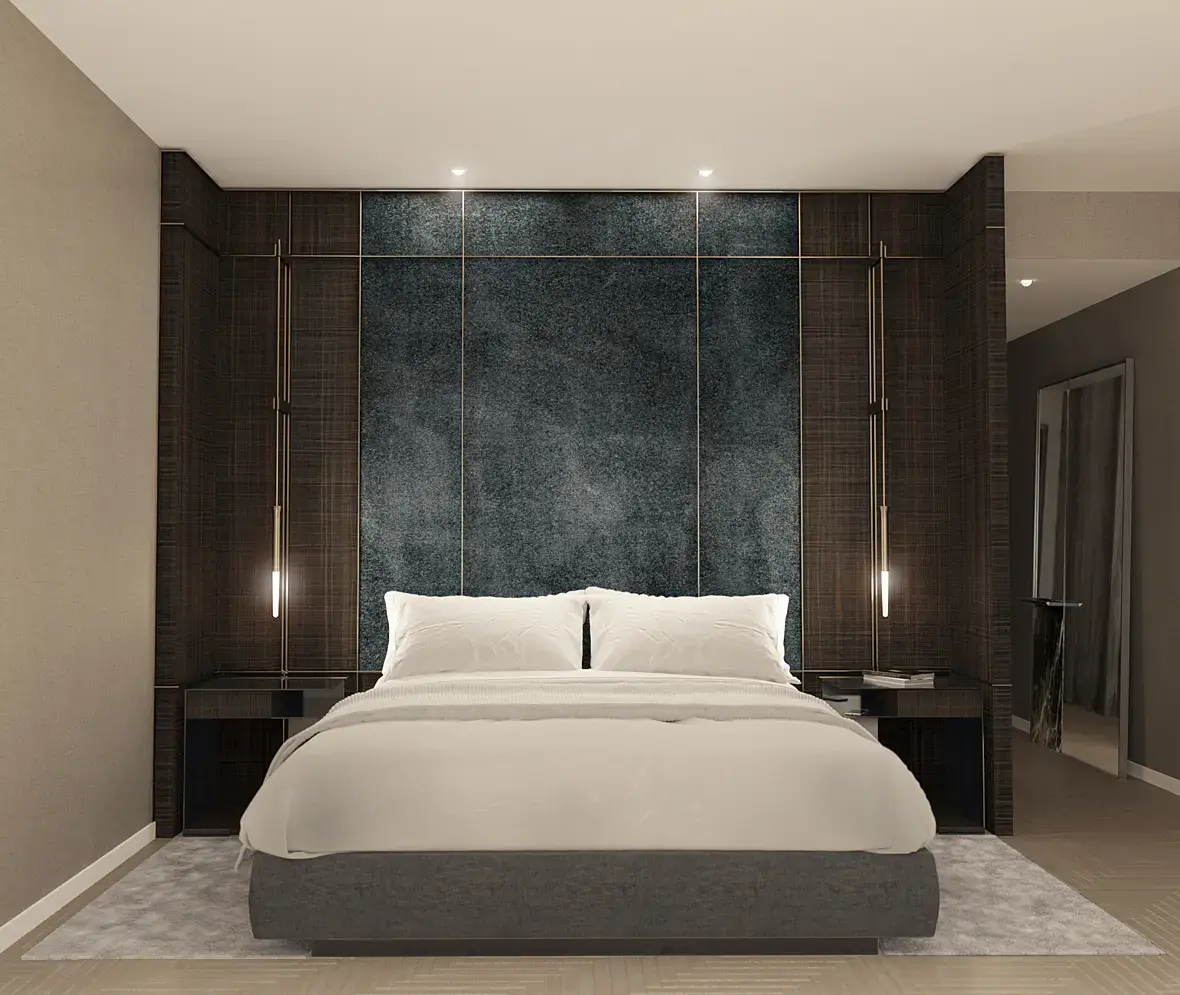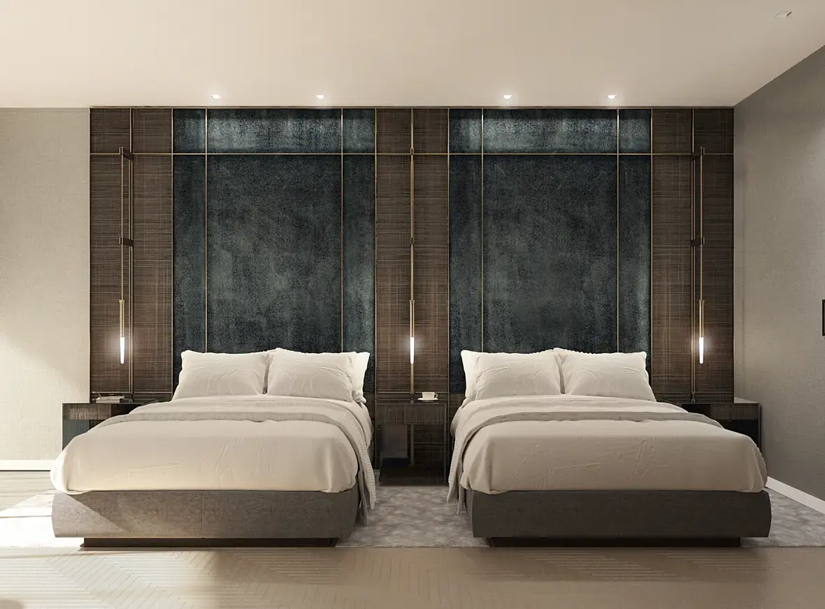 А в кинг рум окно не ближе к кровати, чем в дабл? Можно специально пустить дорожку света на кровать, тогда первый план, более светлый, выделит темный задник. Еще я, если от вирей (или корона) скай света не достаточно, ставлю фейковый светильник-плейн перед шторами. У Вас на рендере бэк за окном нормальной яркости, свет на полу есть, но общее впечатление, что комната освещена плохо. Еще бы посоветовала применить рэй свич материал для пола и стен, Вы избавитесь от серо-бежевого оттенка на потолке и других поверхностях, которые должны быть белыми и в общем картинка станет чище и ярче. А в общем - нормальный гостиничный интерьер.