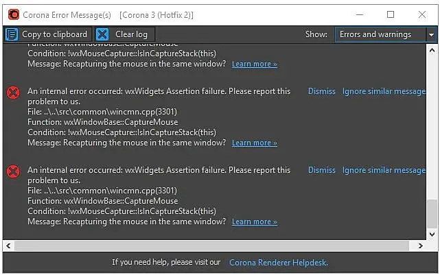 Ошибка виджетов короны, вылазит переодически, мешает работать, вешает окна короны, приходится ждать пока окна оживут и их можно будет закрыть и перезапустить сцену. Кто знает в чем причина? В сети нашел обсуждения такой же ошибки в короне 1,5, но решения не нашел.