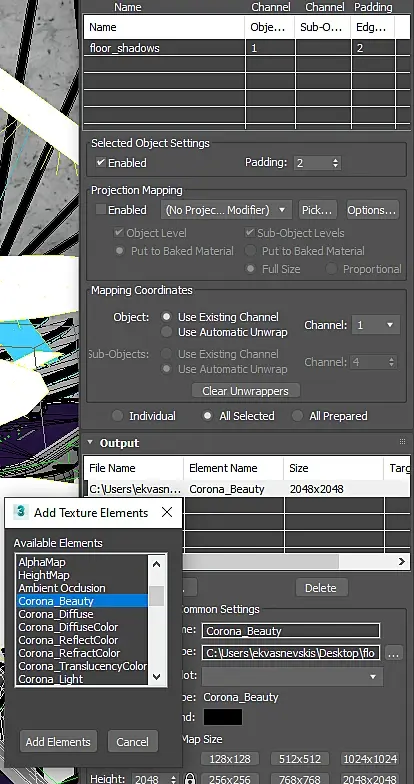 Подскажите, как запечь в текстуру только тени, с альфаканалом?