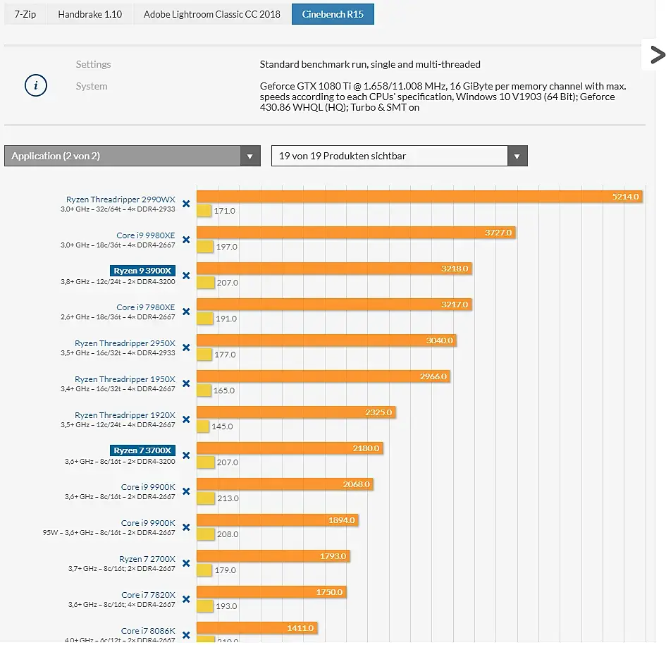 В синьке 3950X быстрее. Потому что тесты 9980XE есть во всех обзорах, а масштабируемость Zen2 тупо поядровая с учётом Ггц при рендере: за 4000 в R15. У 9980XE до 4к.