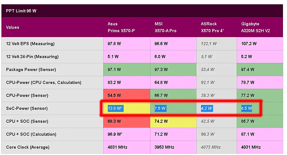 Все это тупо потому что метрика у материнок разная. Одна говорит процессору - "давай напрягайся, у тебя еще есть куда буститься (77%)" а другая "воу воу, полегче, ты уже и так на пределе (100%)". А по факту потребление процессорв одинаковое в этот момент. Материнки просто обманывают выдавая ложную метрику, ложные лимиты