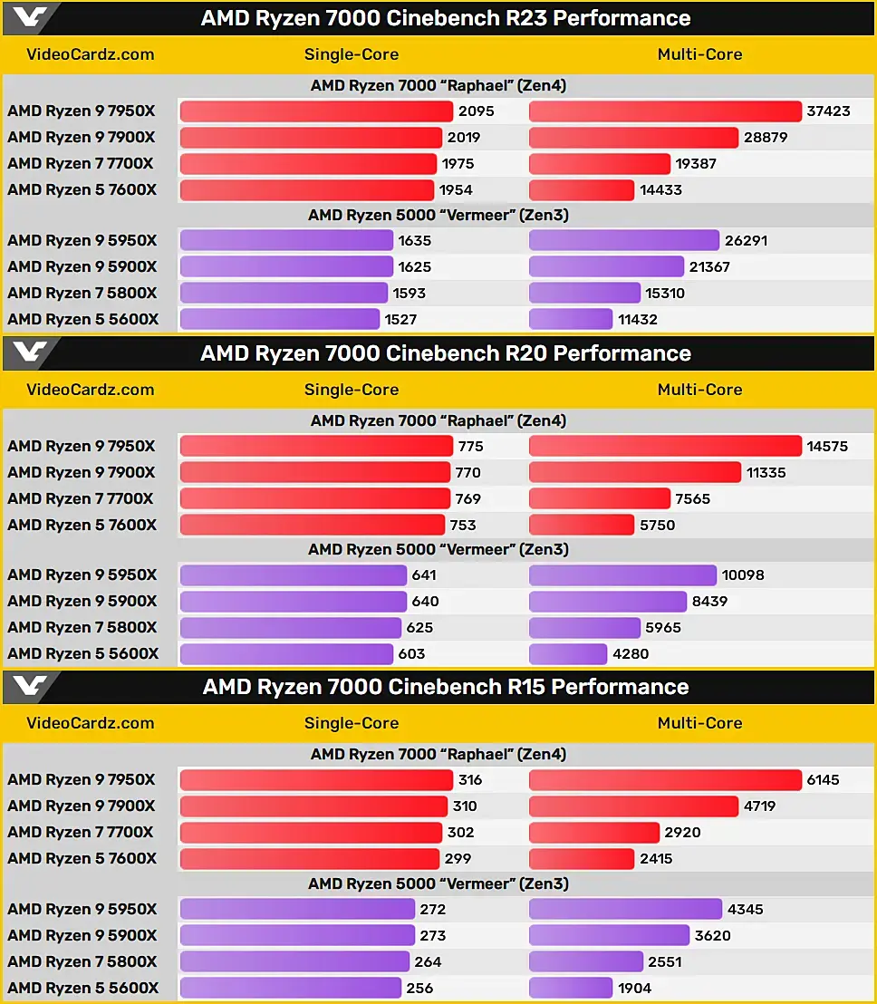 7950X в однопотоке где то на 20% быстрее чем 5950Х а в рендере на 25-35% быстрее. Ну еще в компрессии/декомпрессии и AVX512 7950X очень хорош. В играх, прирост скудный вышел, часто процессор хуже чем 5800X3D. Разброс от 25 до 35 процентов из за особенностей буста у 7950X, чем лучше охлаждение тем лучше результаты и больше отрыв. Даже по потреблению видно что на открытых стендах с супер топ водой проц может выжирать 270вт и рендрить без вмешательства при ~5.4ггц, а на унылом воздухе в корпусе может проседать ниже 5.1ггц при 230вт. Потому такой разброс. Конечно тут будет еще ролять ASIC Quality процессора, Volt Leak, равномерность прижима и термопаста. Ведь процессор на любом охлаждении будет долбиться в 95 градусов, и каждый момент, даже LLC/VDroop будут влиять в совокупности на результаты. Ну а 5950Х непривередливый, как медоед, ему на все пофиг. В стоке 145вт и охлаждай его хоть кулером за 65 баксов на плате с четырьмя VCore фазами и медленным 300гц питальником, ему плевать.