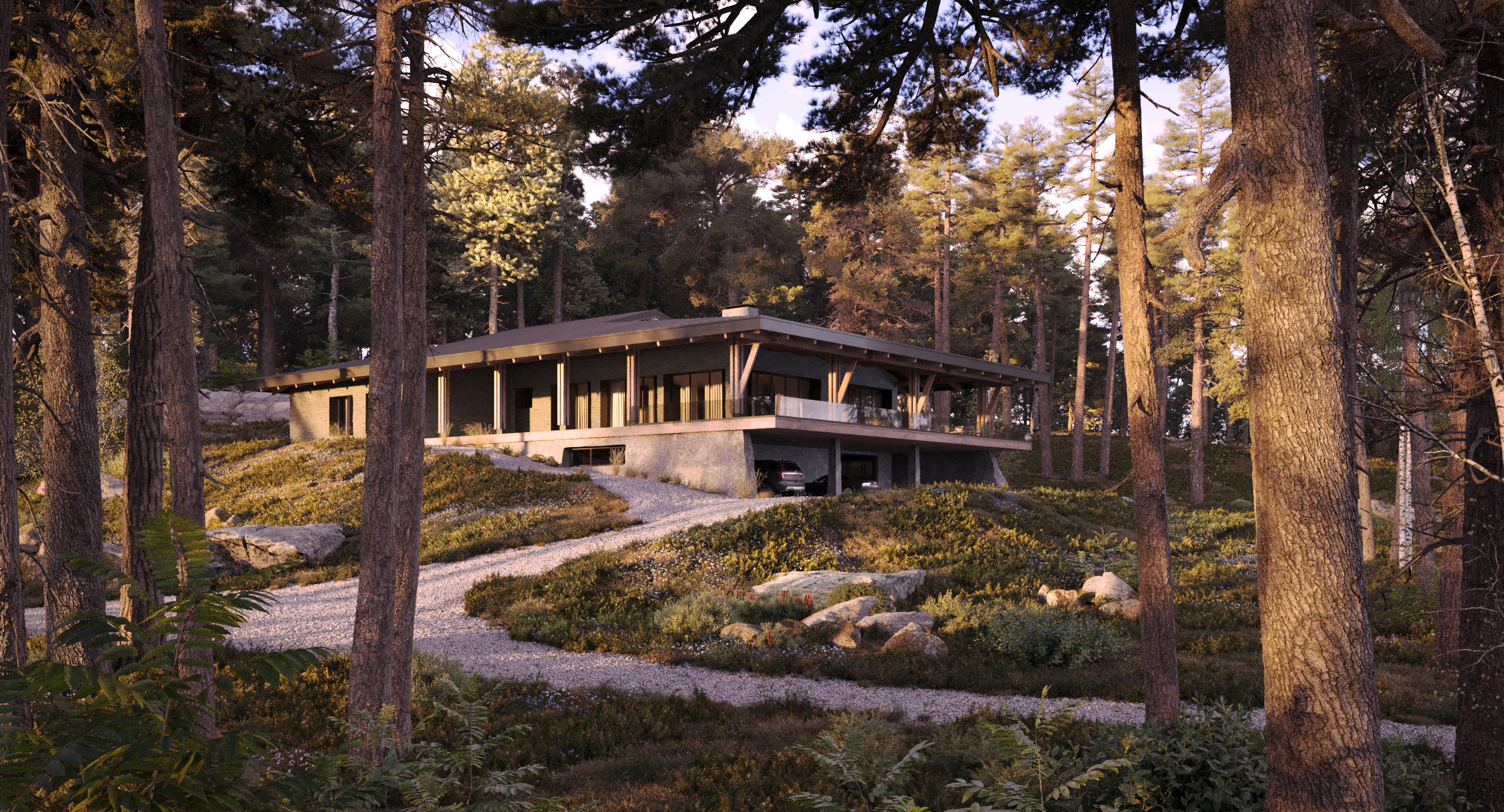Органично вписанный в природный ландшафт, этот жилой дом представляет собой гармоничное сочетание современной архитектуры и дикой красоты леса и скалистого берега реки. В проекте используются натуральные материалы, такие как дерево и камень, чтобы здание естественно сливалось с окружающей средой. Большие панорамные окна открывают захватывающие виды на лес и реку, создавая ощущение единства с природой. Ландшафтный дизайн разработан с учетом сохранения существующих деревьев и естественного рельефа, минимизируя воздействие на окружающую среду. Дом будто вырастает из земли, повторяя линии скал и изгибы реки. Цветовая палитра фасада вдохновлена оттенками коры деревьев и камней, что делает здание практически незаметным в лесном массиве. Этот проект – пример бережного отношения к природе и стремления создать жилое пространство, которое является частью окружающего пейзажа, а не чужеродным элементом. Архитектура здесь служит продолжением природы, а не наоборот. Использование экологически чистых материалов и энергоэффективных технологий дополнительно подчеркивает стремление к гармонии с окружающей средой, делая этот дом идеальным местом для уединенной жизни в окружении природы.
