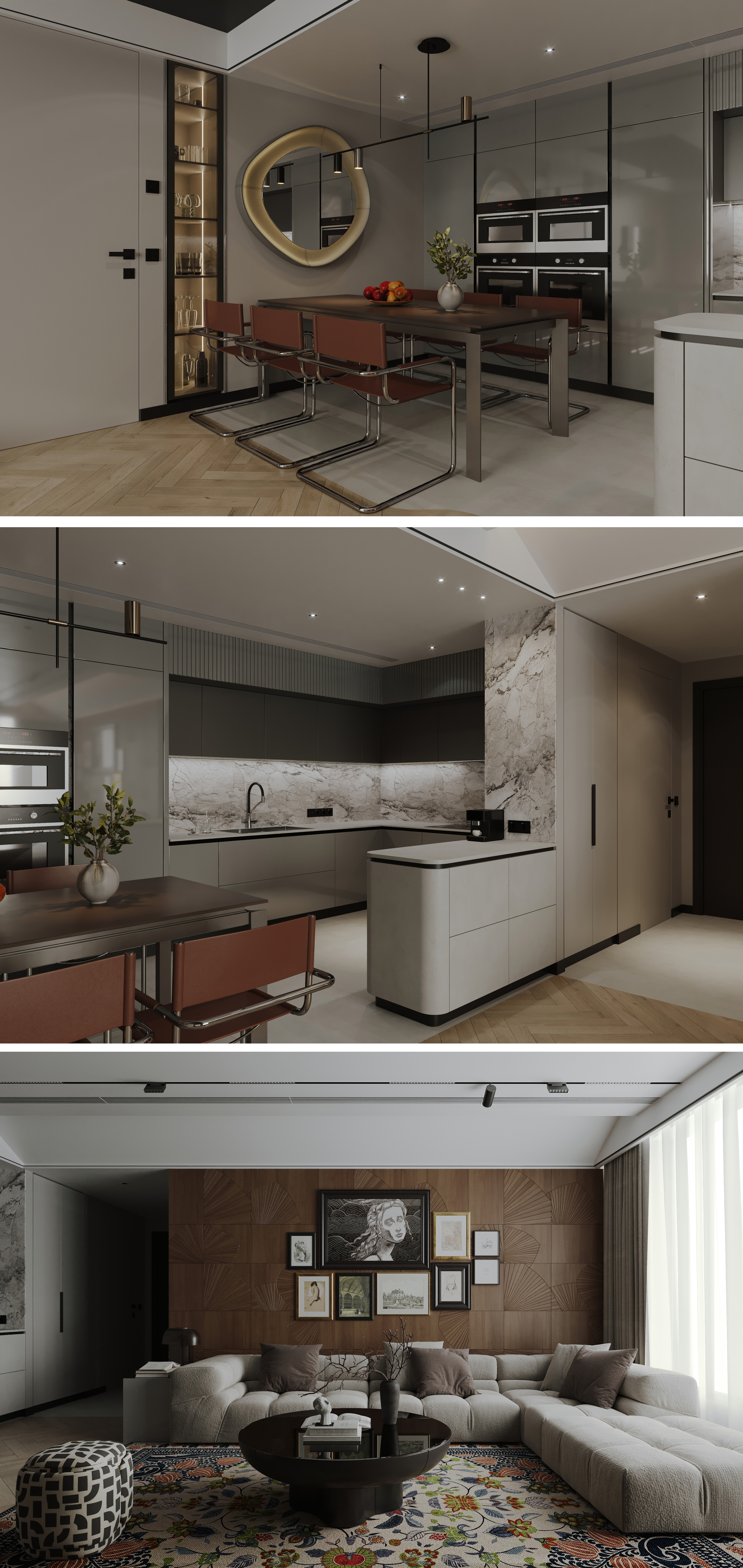 Дизайн+визуализация кухни- гостиной. 3ds max 2024 Corona 13 Всех с наступающим!