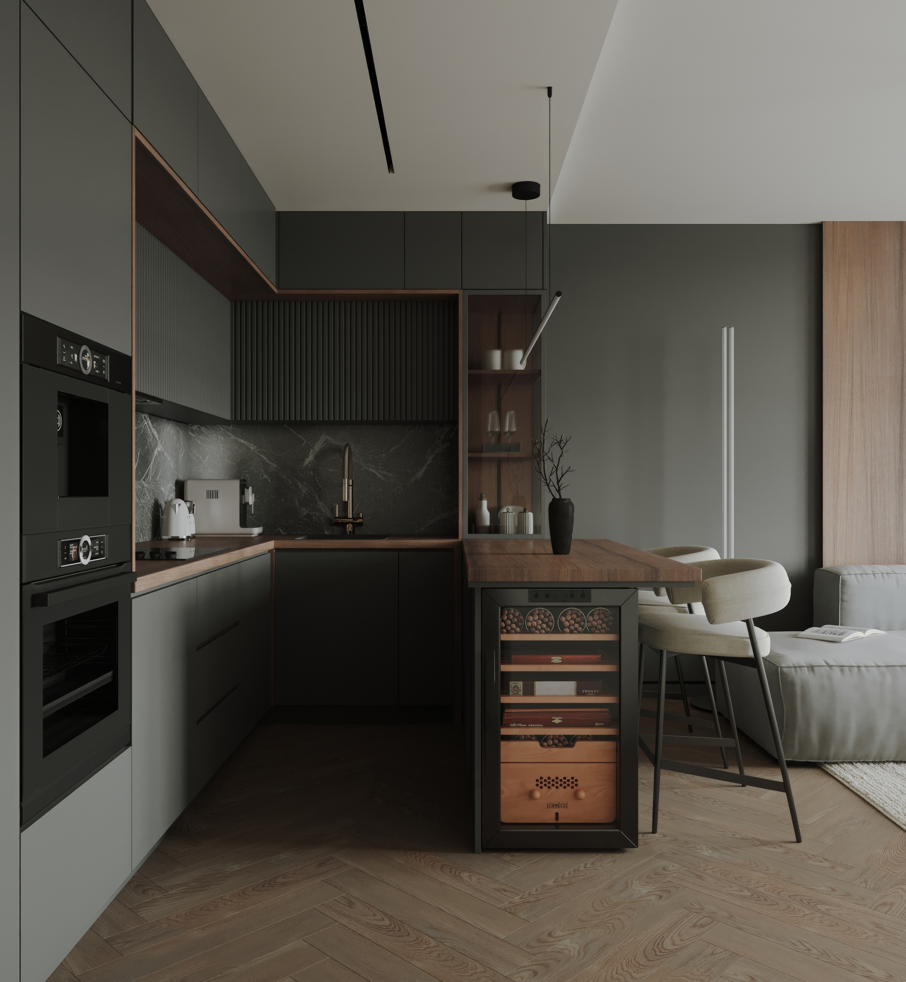 Дизайн+ визуализация кухни- гостиной. 3ds max Corona render