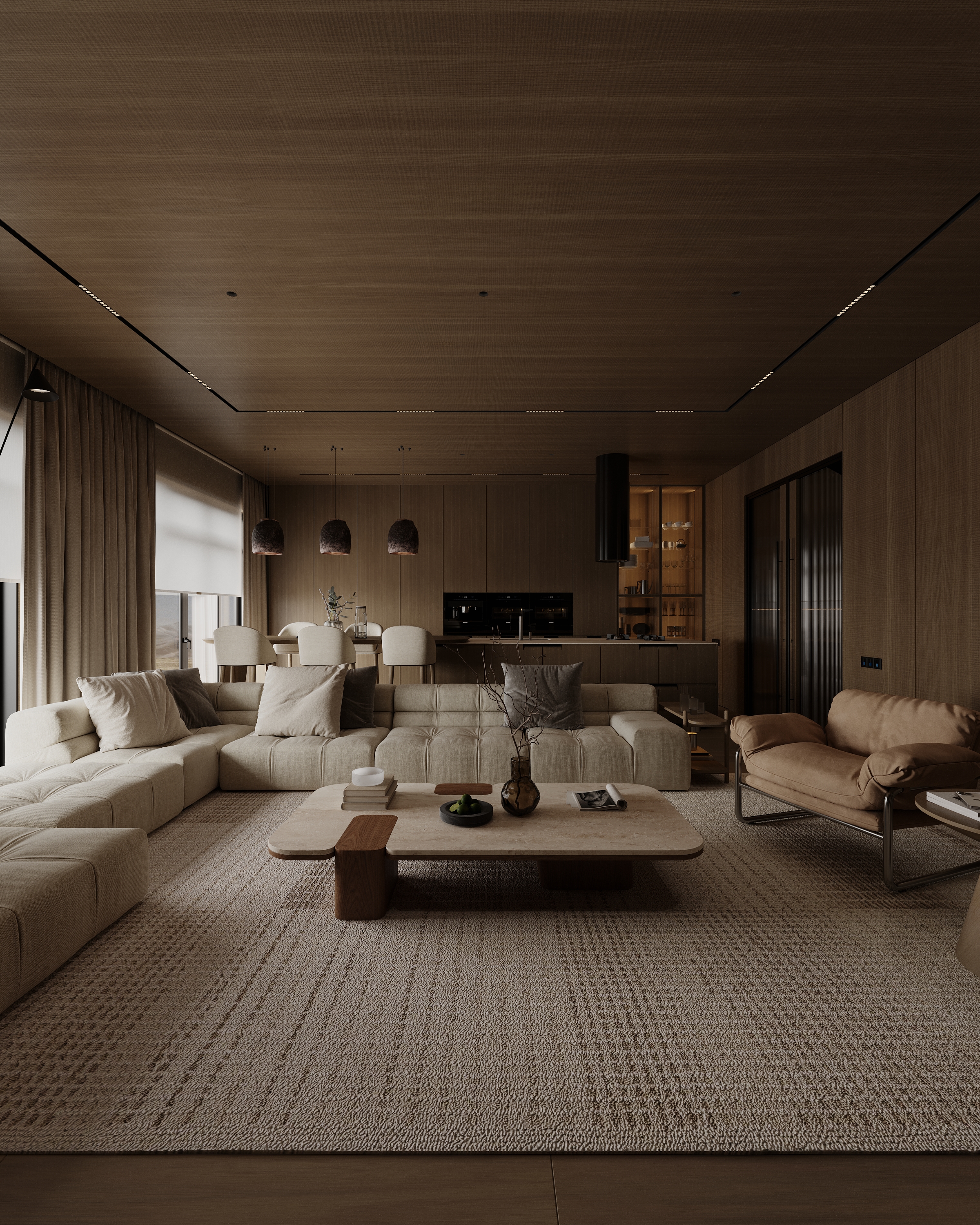 Дизайн+ визуализация кухни- гостиной. 3ds max Corona render