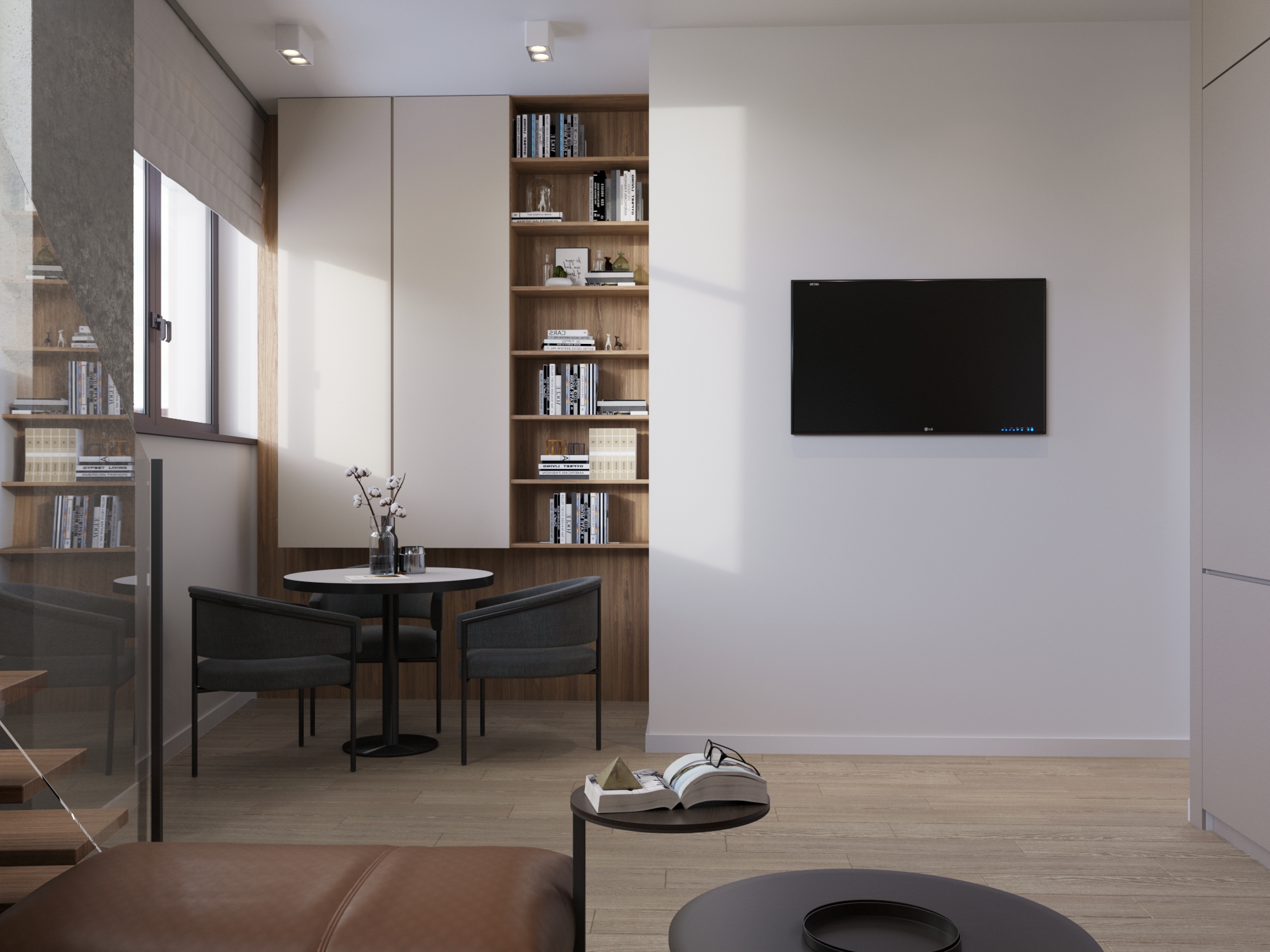 Если вы не компетентны, не говорите ерунды. С дизайном здесь тоже проблемы. Вы хоть понимаете, что целью дизайна является обеспечение удобства и приятное глазу взаимодействие среды с людьми? Важное требование к планировке кухни нарушено. Для открывания духовки вниз, нужно предусмотреть расстояние не менее 100 см. А что мы имеем? Расстояние около 60 см и квест в виде дивана с подачей горячего блюда сразу на плед. Да и близко к стене технику нельзя ставить... А что у нас с обеденной группой? Судя по размеру это кофейный столик на 2 персоны + очередной квест для посадки и высадки. В подобных условиях стул у навесного шкафа видимо для кота. Диван под открытой лестницей (со стороны пуфика есть травмоопасное место в виде металлического столбика) будет постоянно в грязи, как бы чисто в квартире не было. Подобное решение можно принять если лестница имеет закрытую конструкцию. Да и ТВ непонятно для каких целей. С обеденной группы не посмотреть, с дивана голова будет постоянно под углом. Вот вам и ваш супер дизайн с его травмоопасными удобствами.