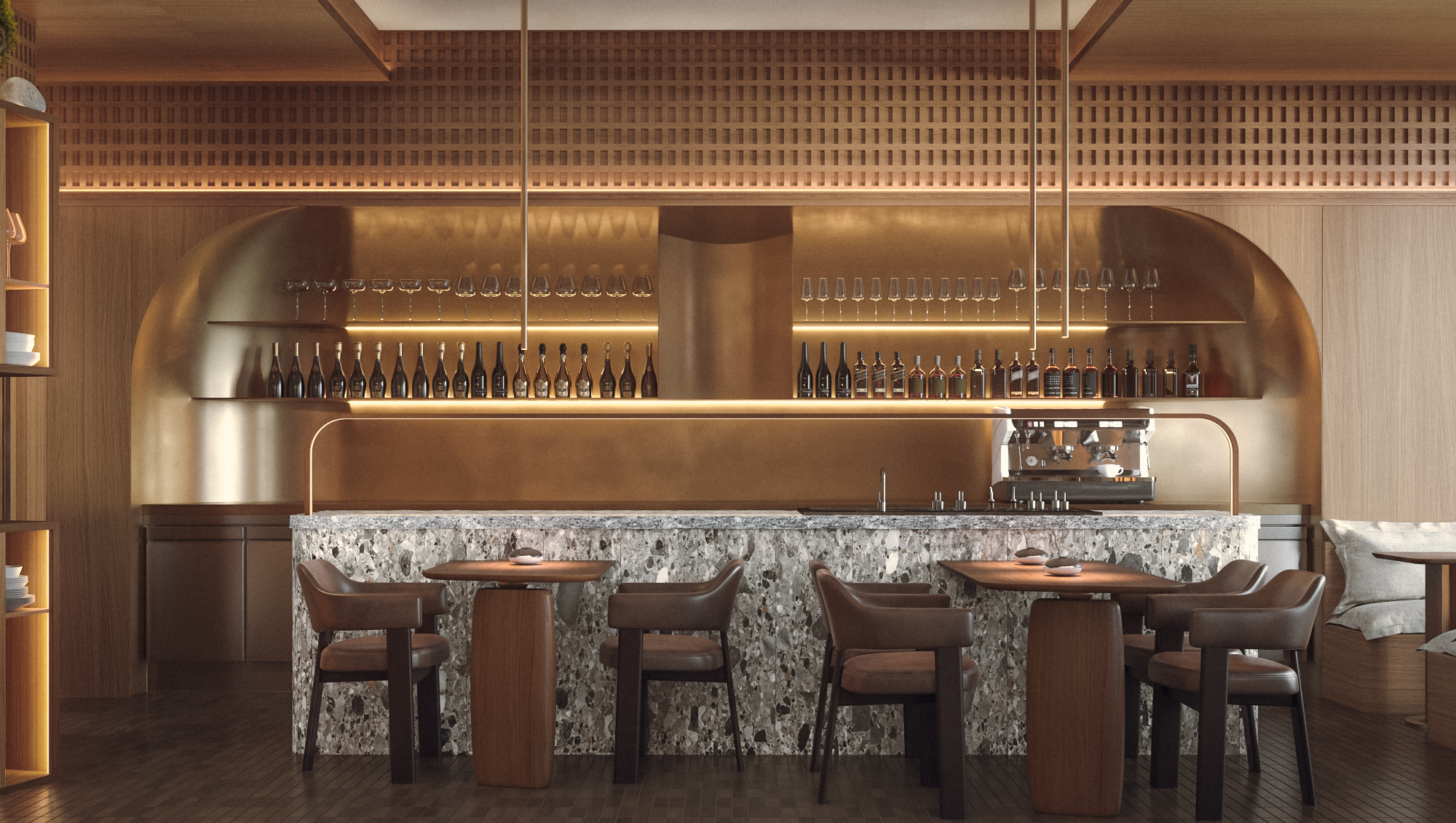 Проект интерьера ресторана азиатской кухни Дизайнер: Мария Фёдорова Визуализация: Илья Блинов 3Ds Max, Corona, Photoshop