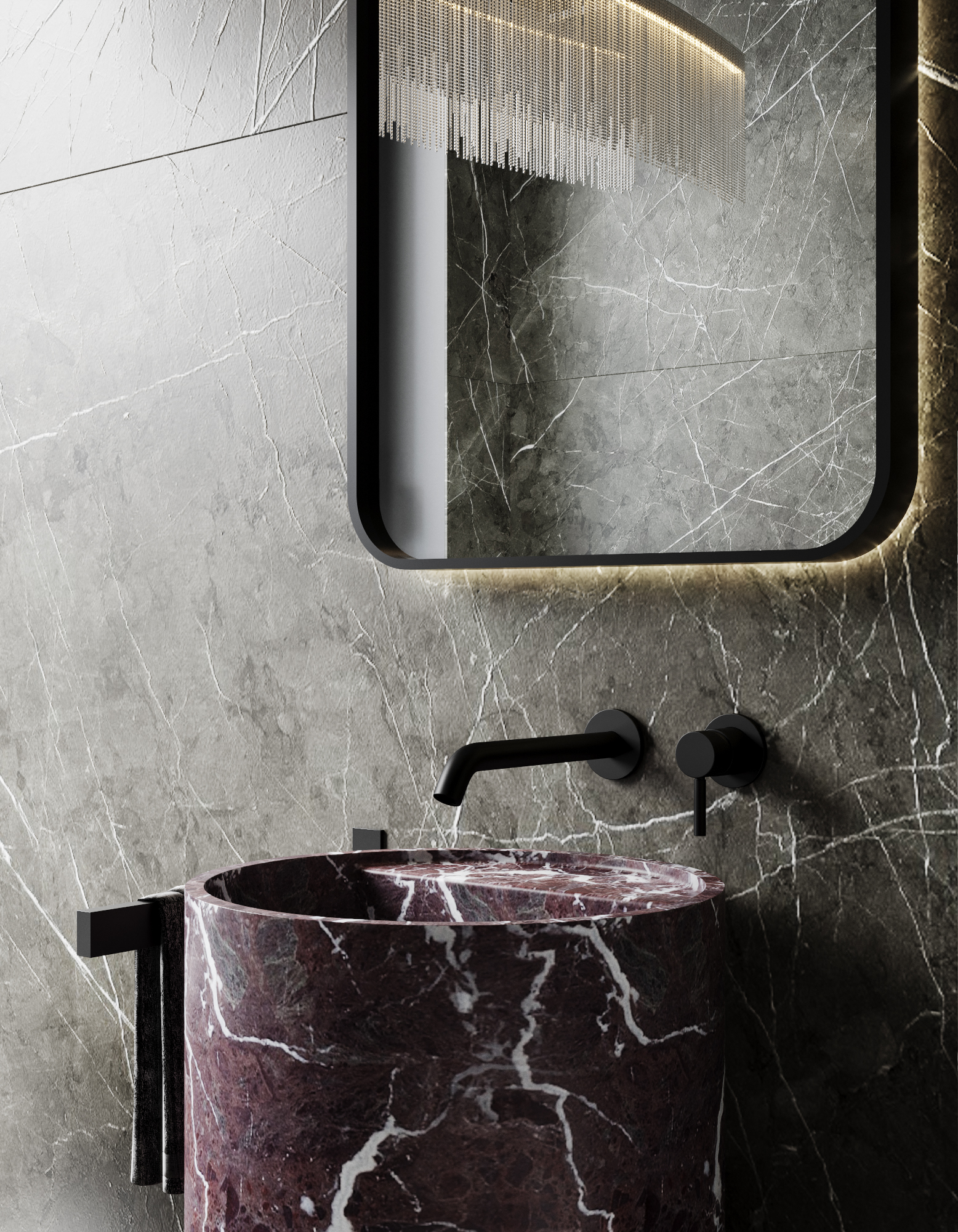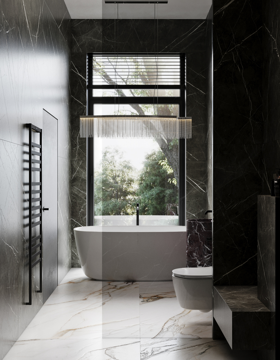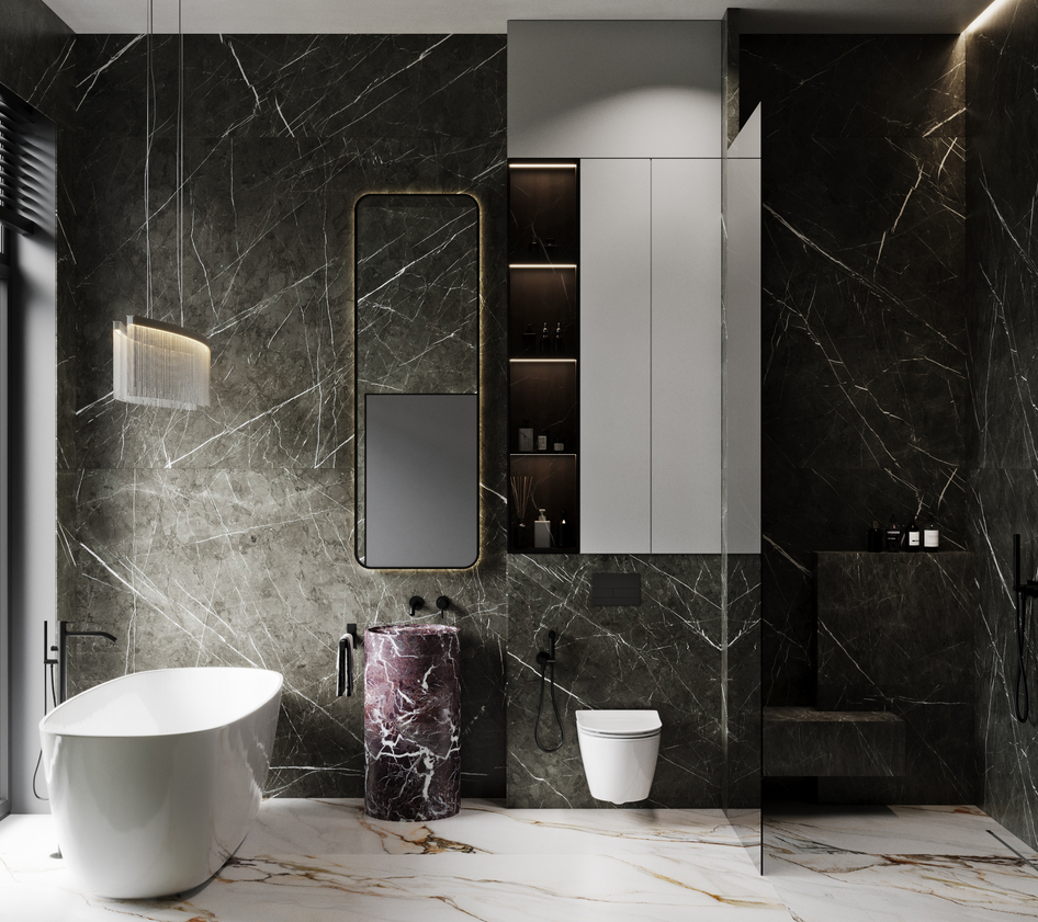 Визуализация ванной комнаты в темных тонах