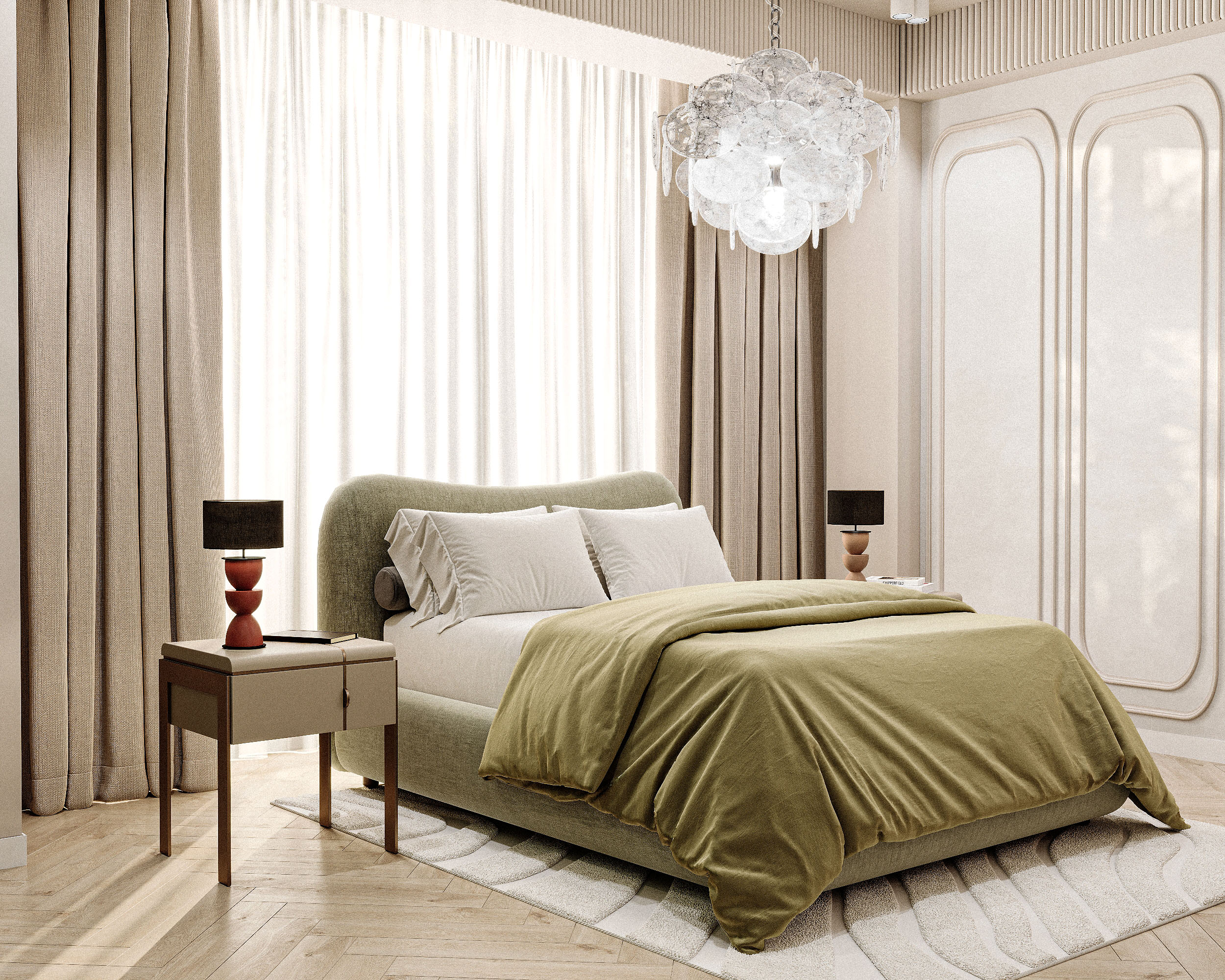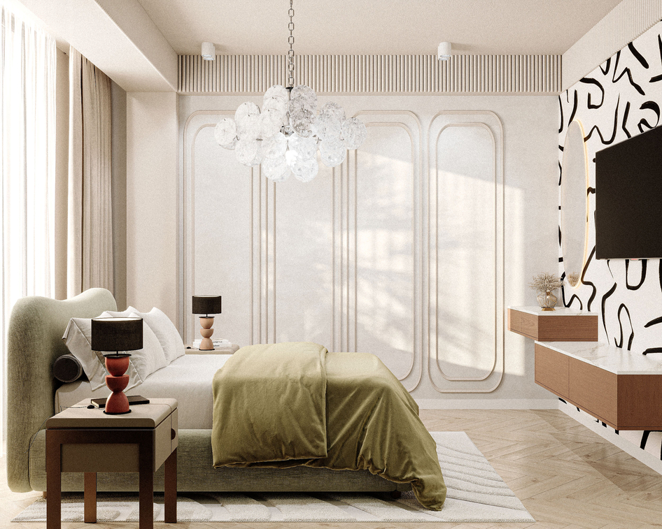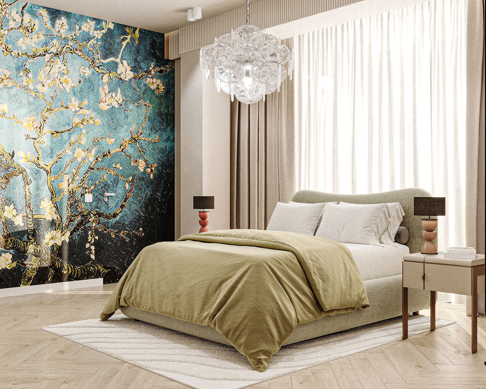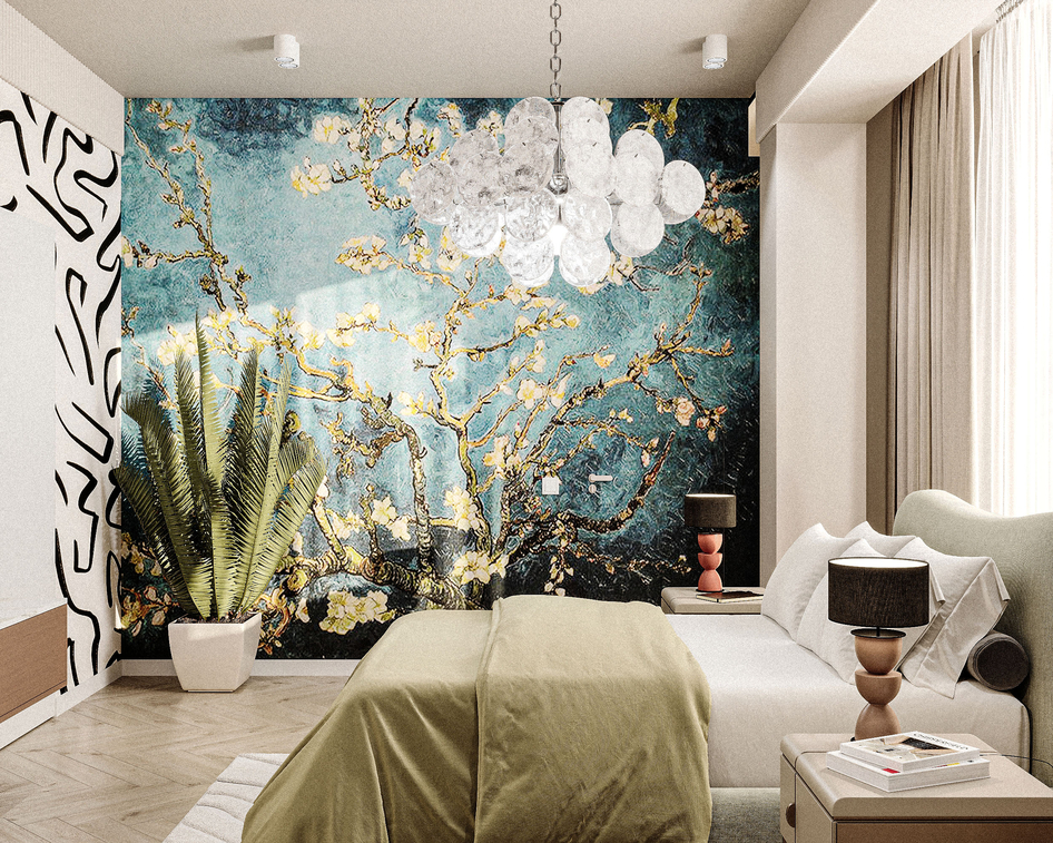 An eclectic bedroom. Completed in 2-3 days. One of the most unusual projects, thanks in advance for your attention. Software: 3D Max, Corona Render