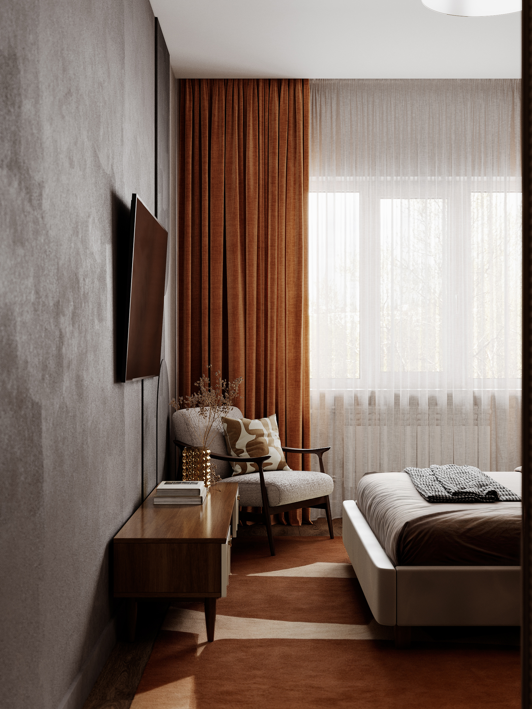 Виз для VIOLETTE_DESIGN Тверь. Визуализатор Я @YKvisual Немного ai использовалось для добавления складок на кровати, для улучшения тканей и одежды в гардеробе. 3dsmax, corona, ai, krea.