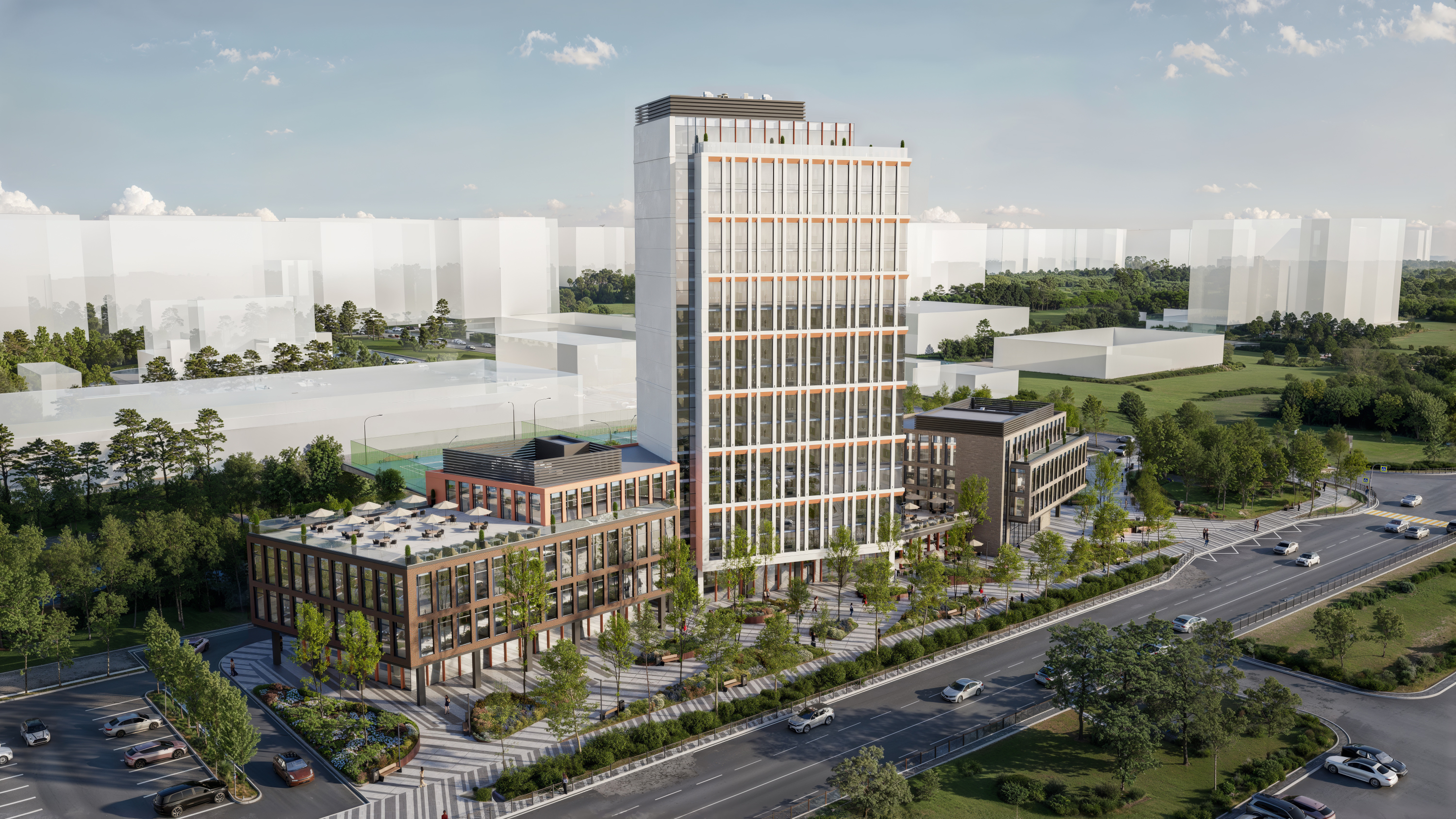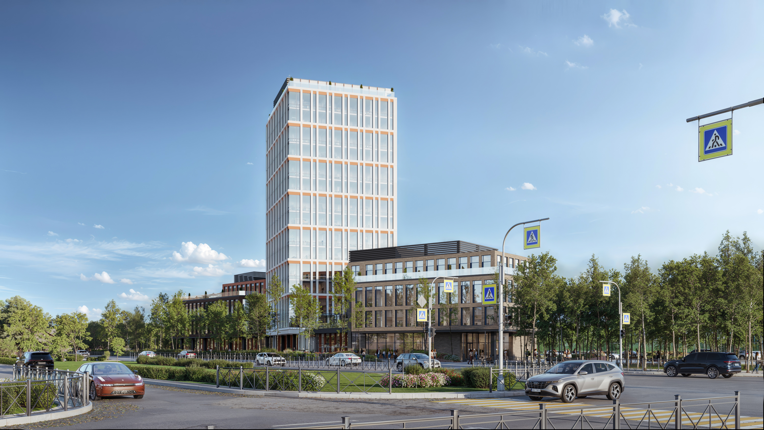 Визуализация бизнес центра Локация: Казахстан, Караганда Софт: 3ds max, Corona Render, Photoshop, Stable Diffusion, Magnific AI