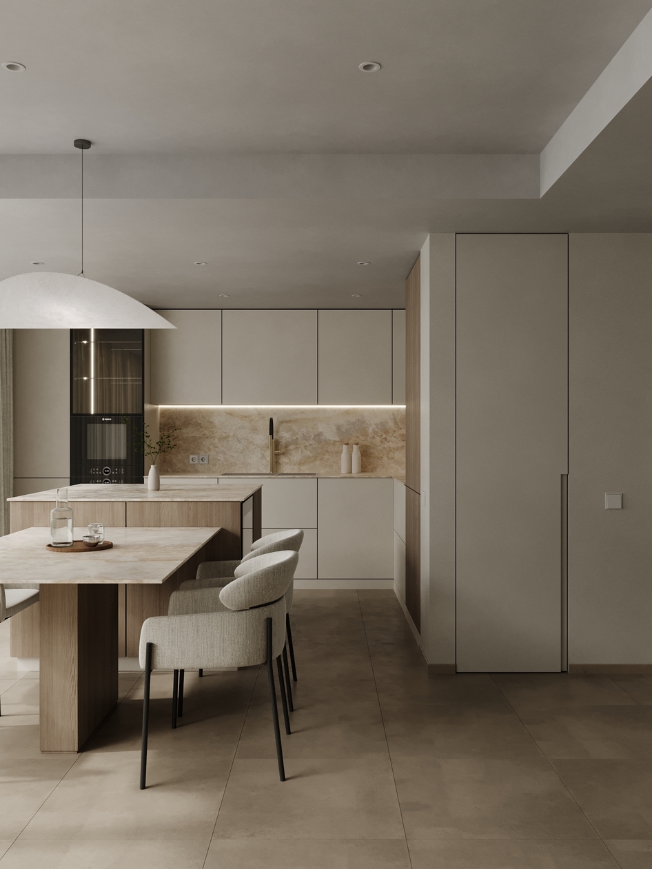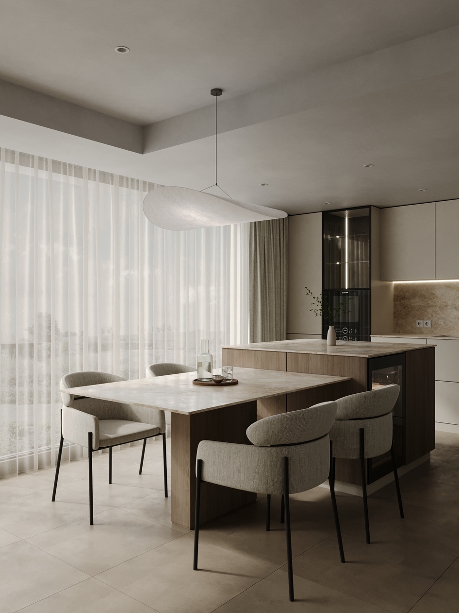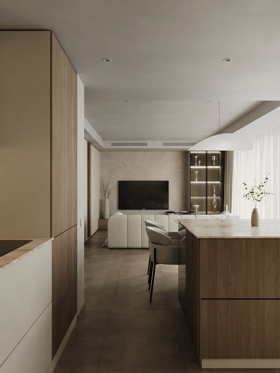 Визуализация кухни - гостиной в Испании по дизайн проекту. 3DSmax, corona 11