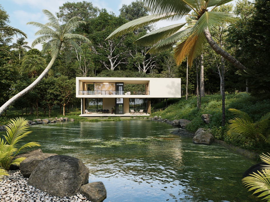 Визуально работа смотрится хорошо и приятно: водичка, зелень, пальмы - всё, чтобы появилось желание открыть и поставить лайк.