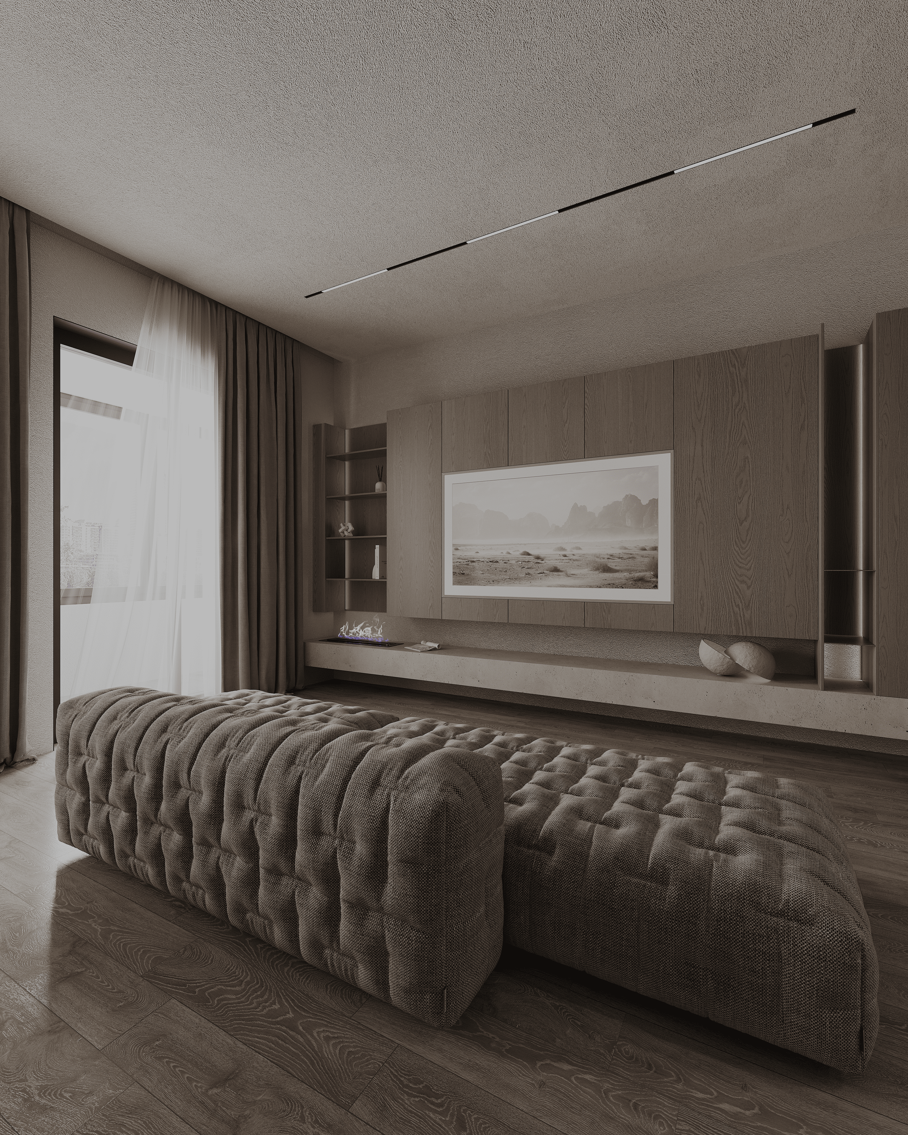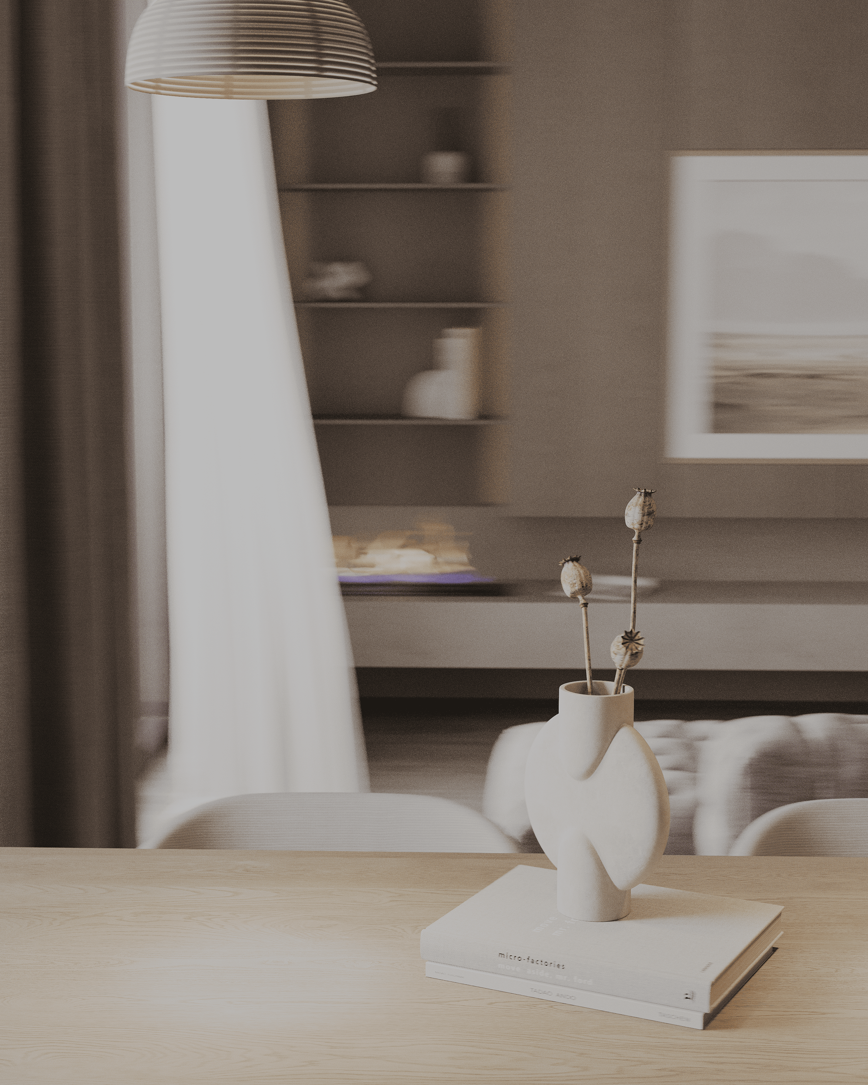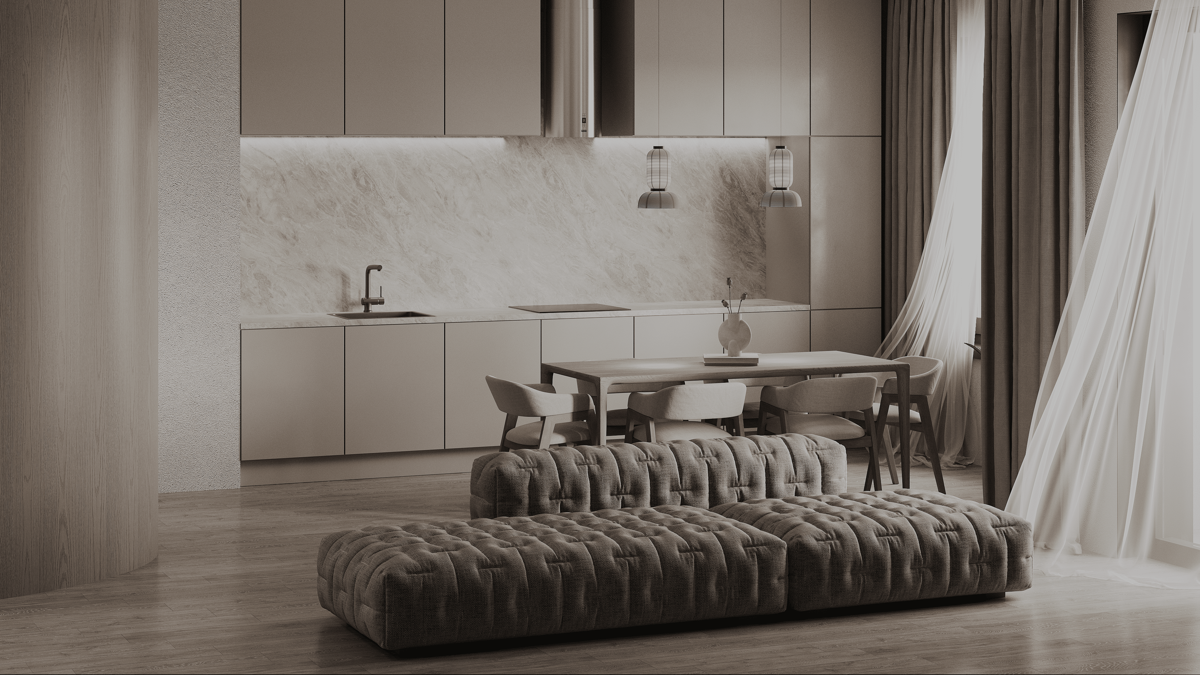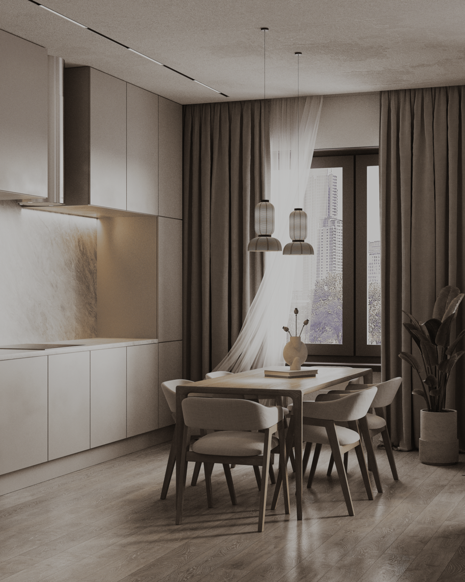 Что за сквозняк там тюль гоняет при закрытых окнах?? Очень депрессивный интерьер. С технической точки зрения сделано все хорошо!