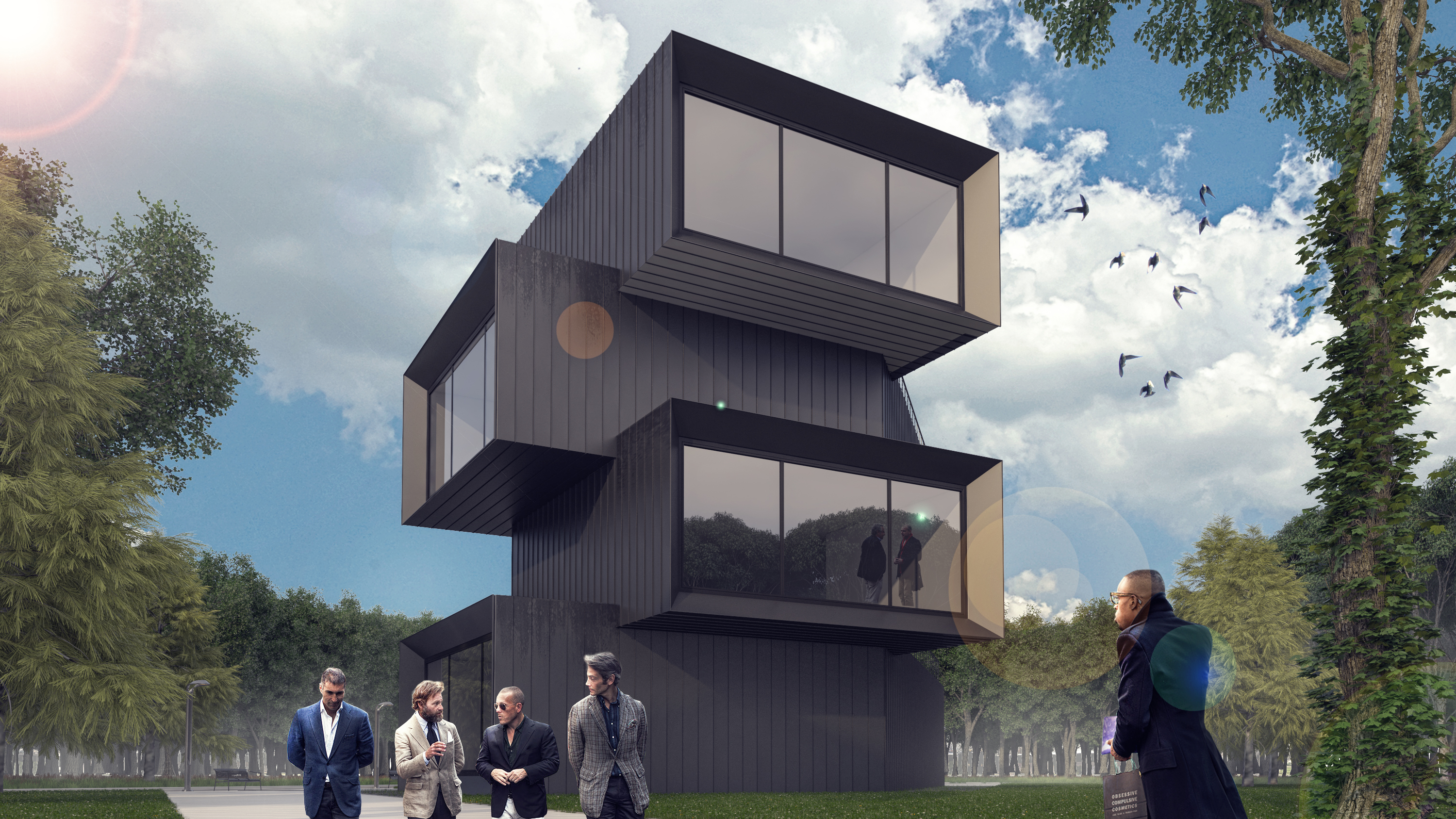 Сценарий не понятен. Парковая прогулочная зона и тут это сооружение. Похоже больше на какой-то павильон не офисного назначения.