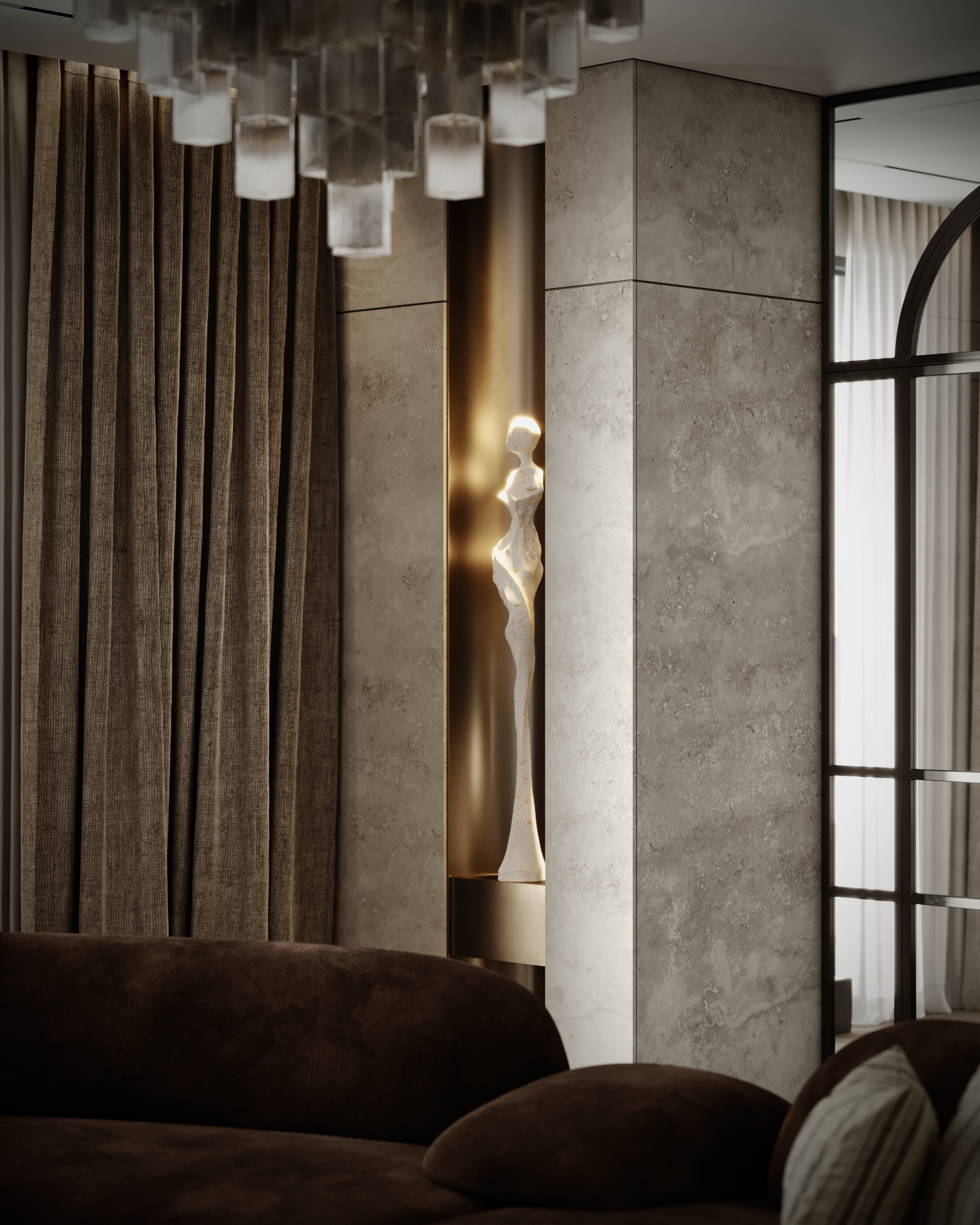 Данный проект достался мне от другого визуализатора. От меня требовалось разработать дизайн с нуля в своём стиле и создать визуализации — так я смогла полностью раскрыть пространство по-новому.