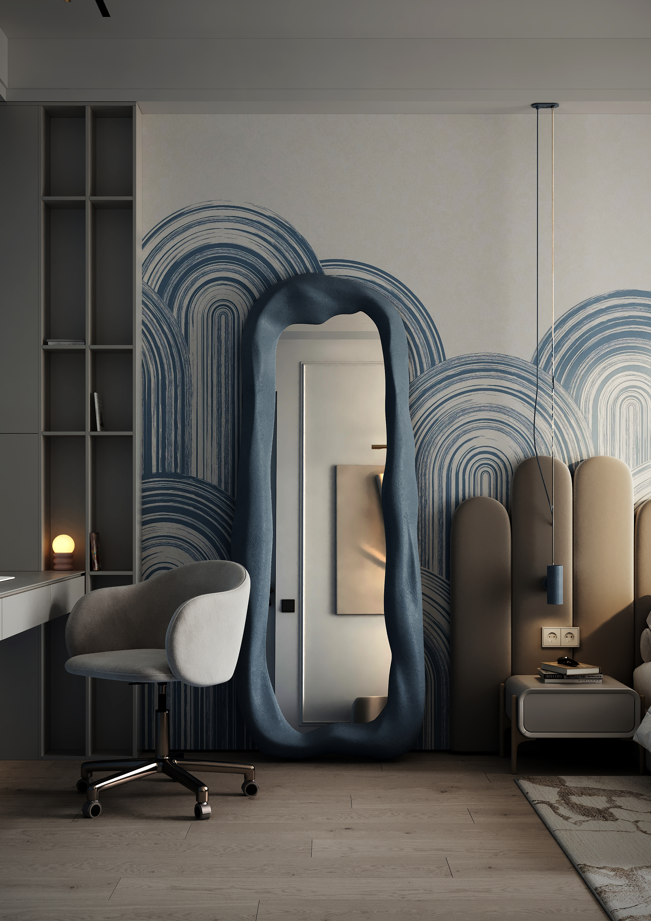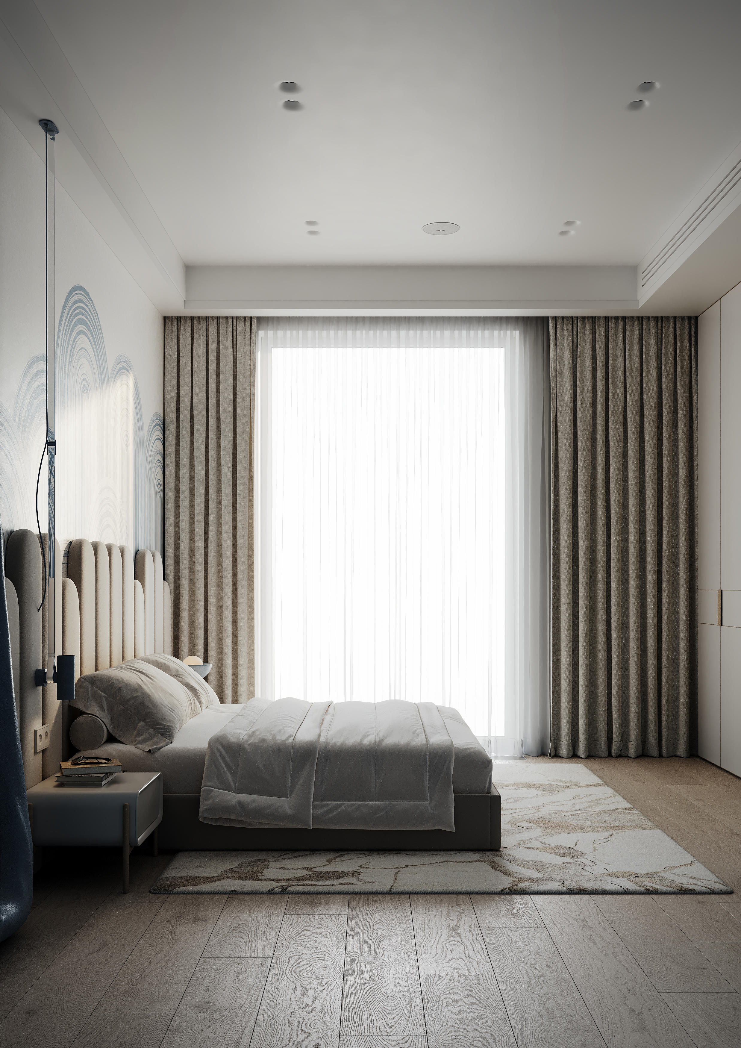 Провод ушел в оголовье кровати и не обещал вернуться. А что это - бра и ли подвесной светильник, если бра - зачем чтото висит с потолка, если подвесной зачем оно крепится к огольовью? )) Мда