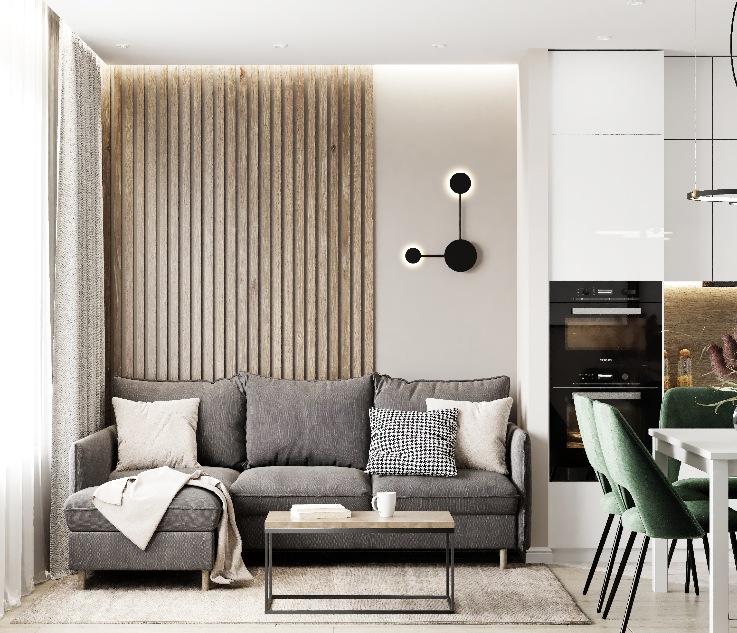 По статистике в среднем люди тратят на приготовление пищи 52 минуты ежедневно и допустим еще столько же моют посуду, думаю на два часа можно будет отодвинуть стол ближе к проходу. Зато можно отдыхать в зоне гостиной и детям и взрослым, что бы не торчать вечно по своим комнатам. В следующий раз подпишу работу как: " квартира для молодой пары с тремя маленькими детьми и бабушкой которая у них часто гостит, площадь маленькая но вертимся как можем" ))