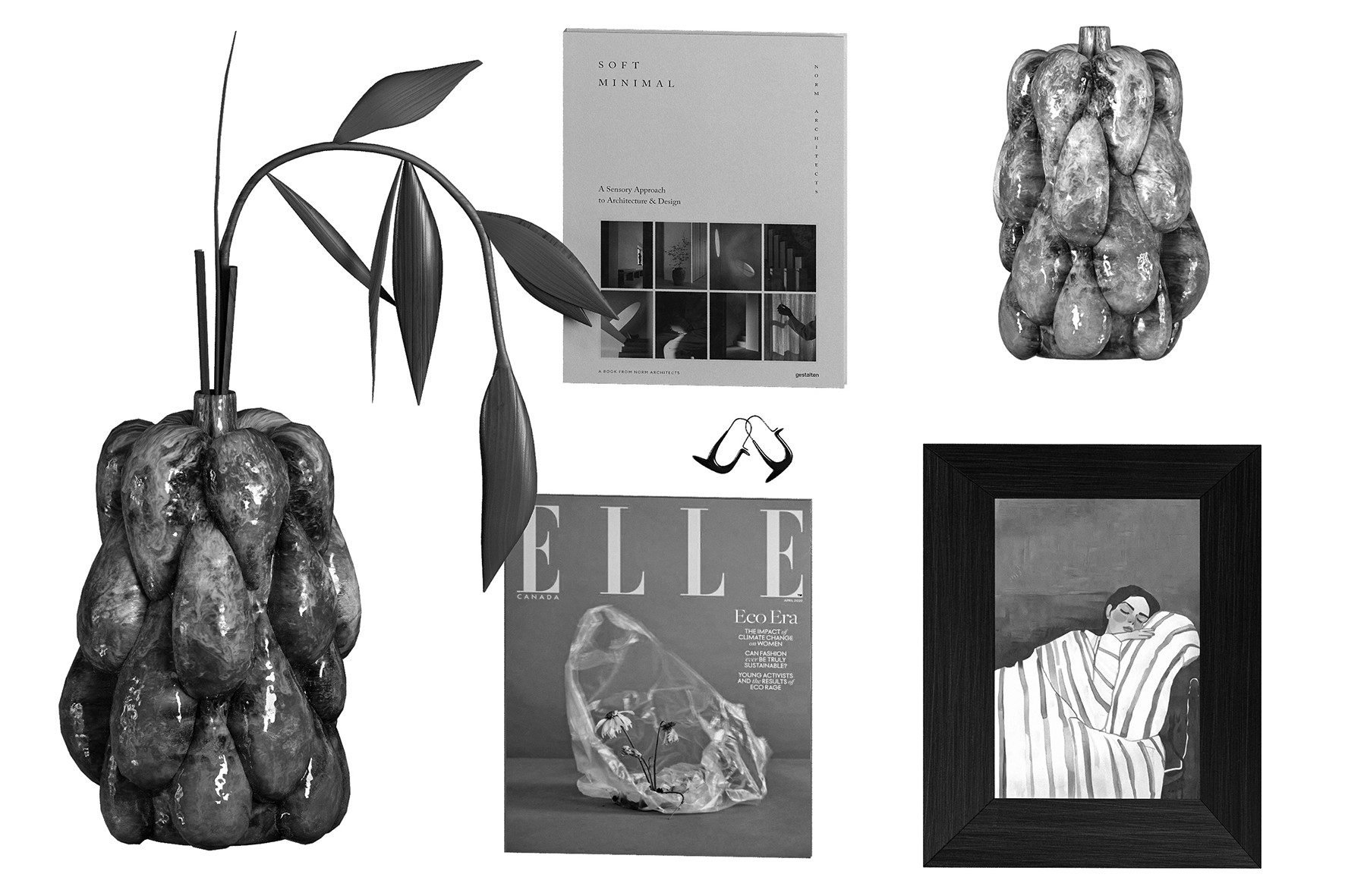 Decorative Set with Heliconia and Marlowe table Lamp