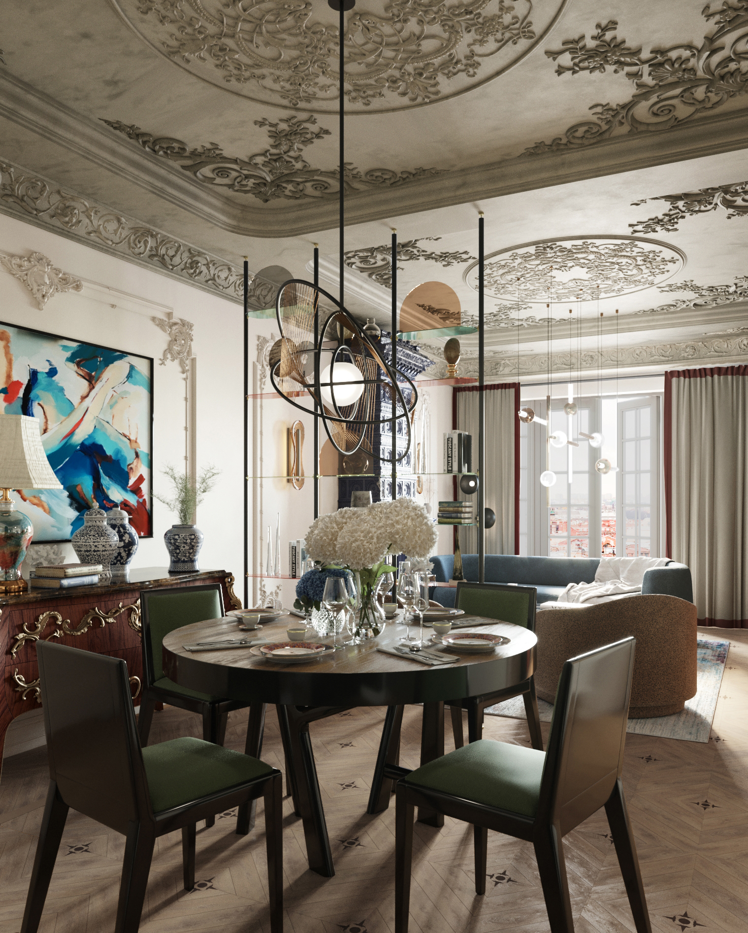 Eclectic interior design done in 3Ds max an Corona Render