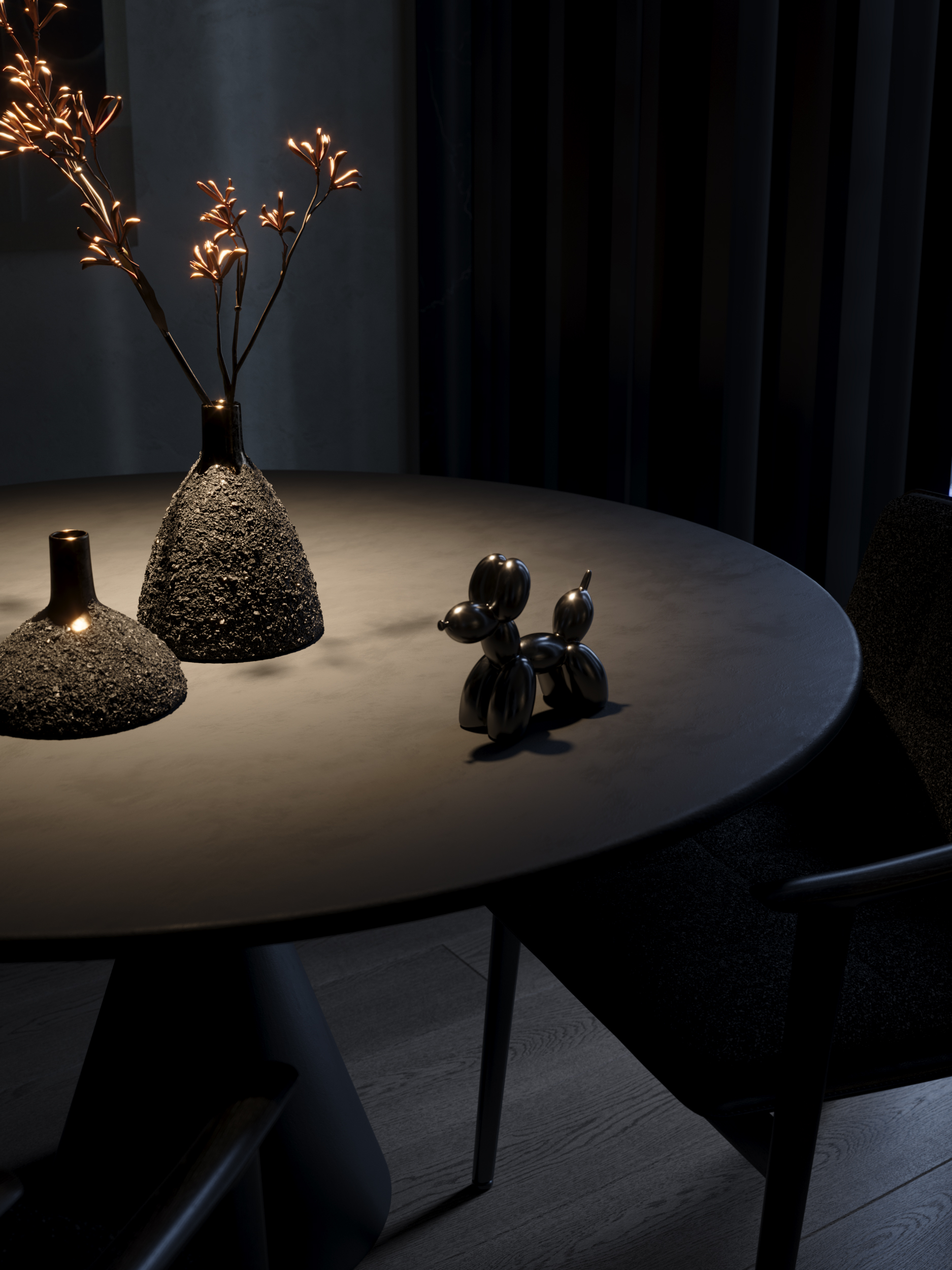Minotti LINHA table and FYNN SADDLE HIDE Chair