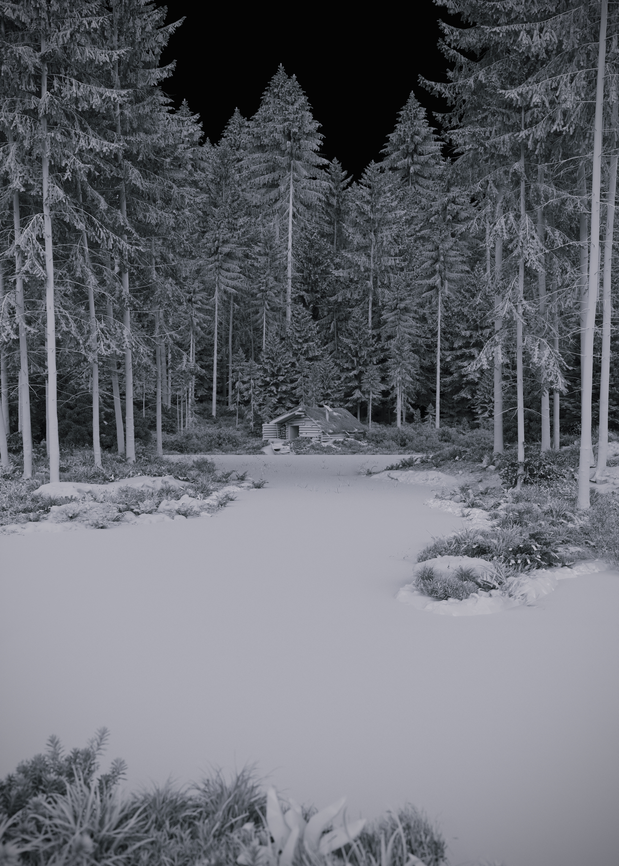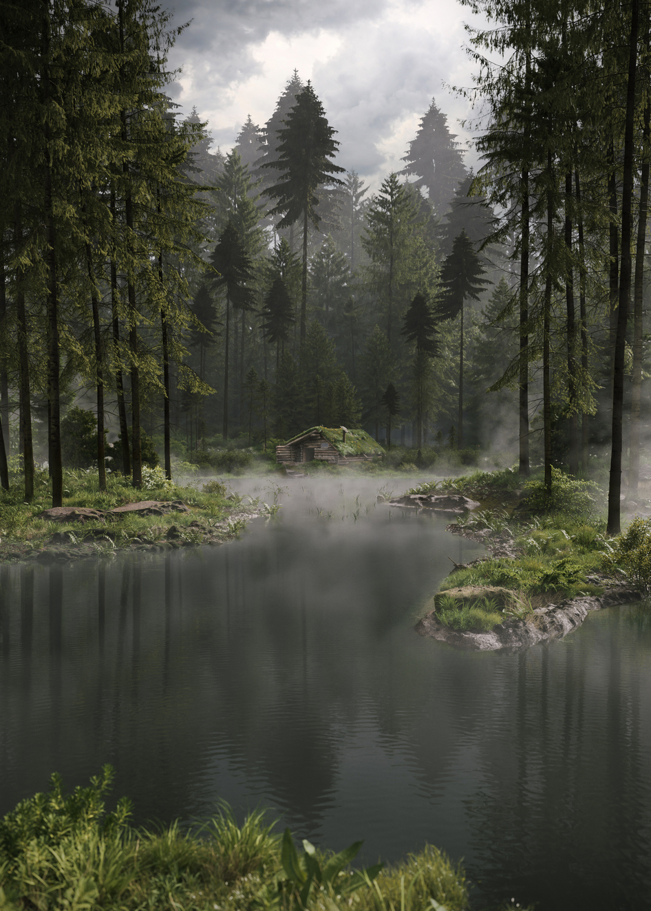Сцену собирал в 3ds Max, рендерил в Corona Renderer. Лес сделан с помощью Forest Pack.