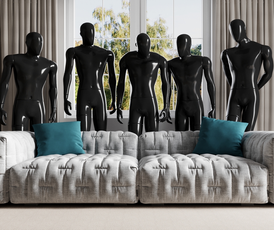 на изображении манекены восторженно смотрят на диван, восхищаясь его прочностью и красотой, желая его купить, BOCA ROOM свяжитесь со мной). Мне стыдно за твои фантазии