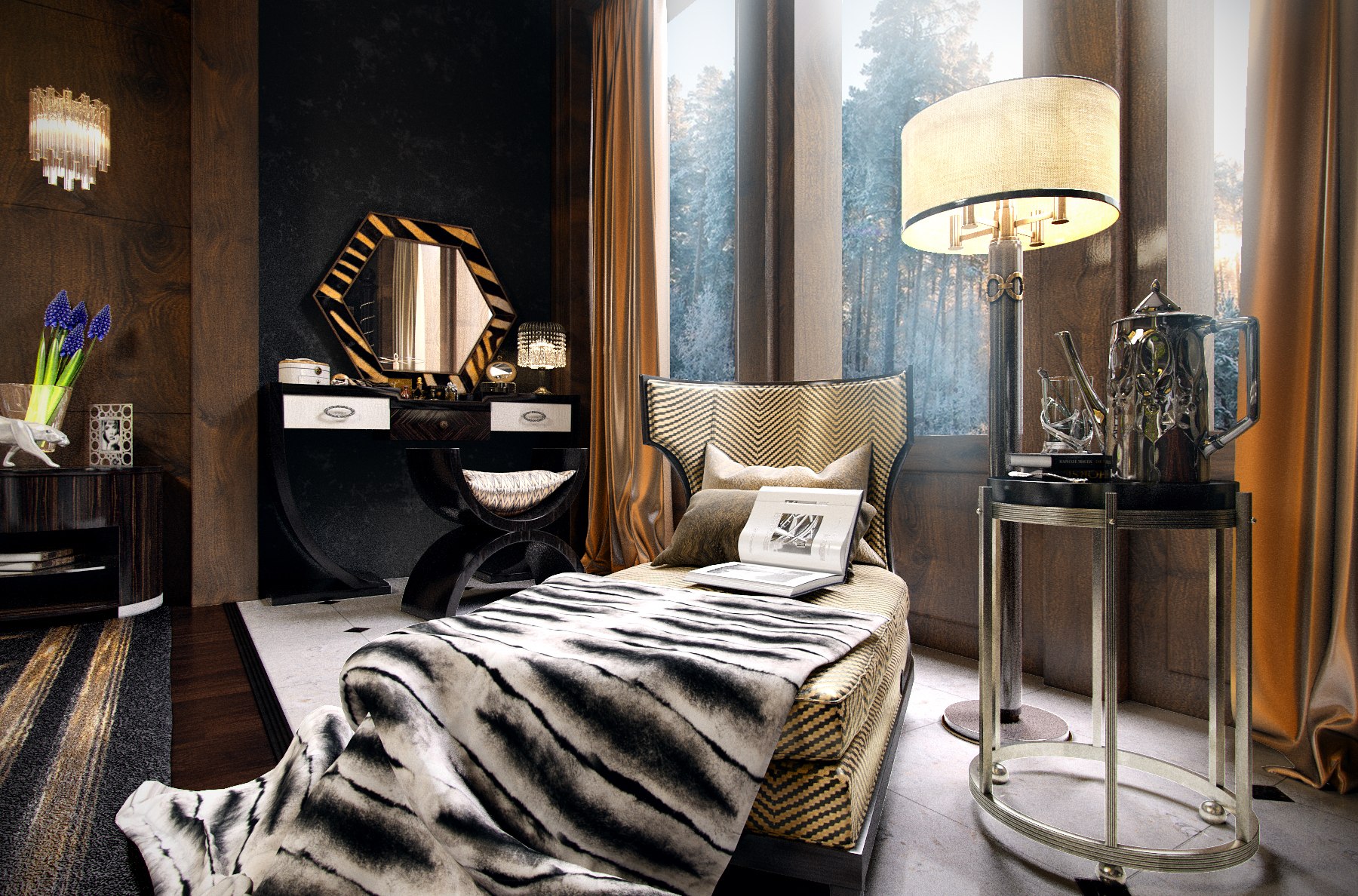 Визуализация спальни в частном доме в стиле ар деко для творческой мастерской Be in design (www.beindesign.ru).