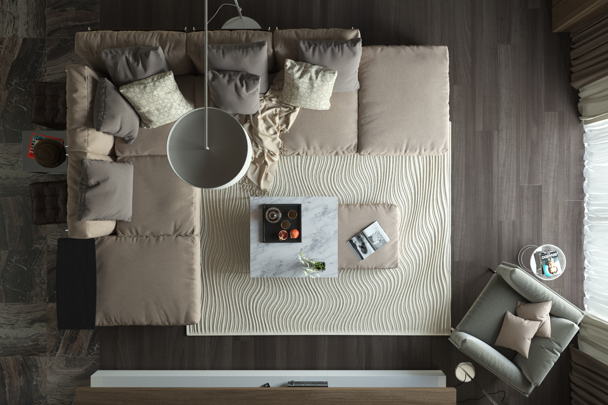 Подскажите, пожалуйста, а из чего в реальности будут делать здоровенную панель "под дерево", которая из-за ТВ переползает на потолок? - Сам такие штуки люблю, однако в реальности на них всегда какие-то швы и стыки.