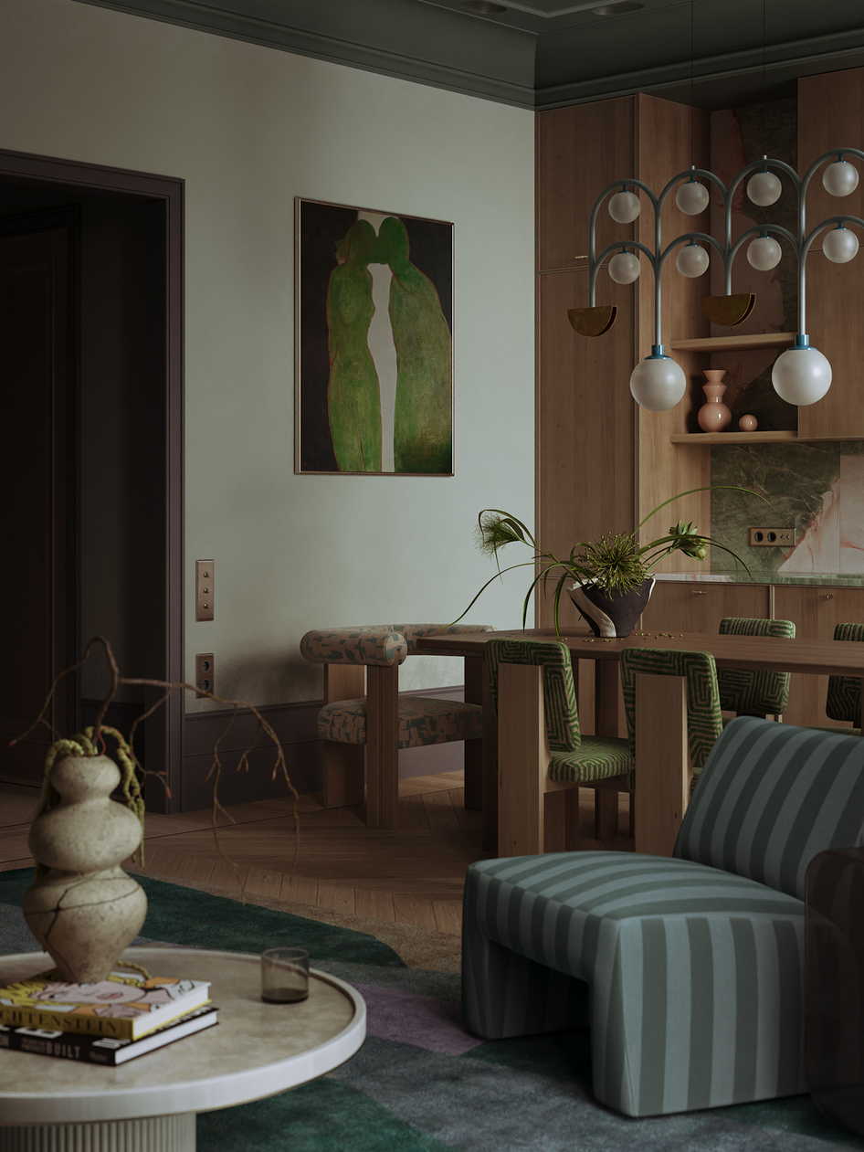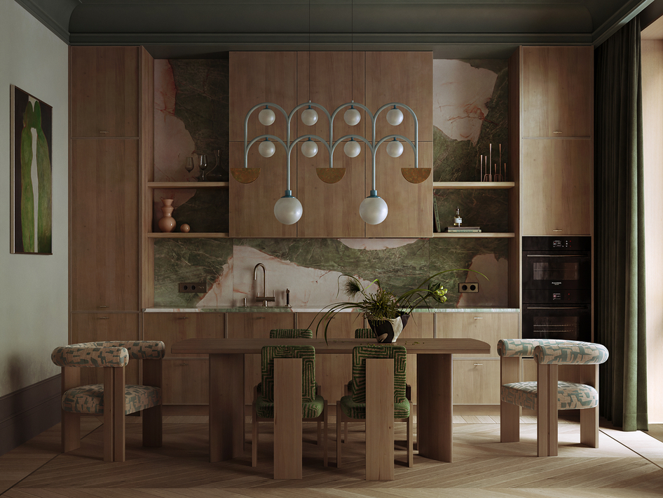 Для такой работы я не пожалел бы эпитета "потрясающая", ибо она полностью удовлетворяет моим вкусовым предпочтениям в плане цветового решения, форм и общего настроения интерьера. Сама картинка, то есть визуализация, на очень хорошем уровне как в части материалов, так в части композиции кадра, света и фотоэффектов. Это верный претендент на гору. Автору уважение и пожелания творческих успехов.