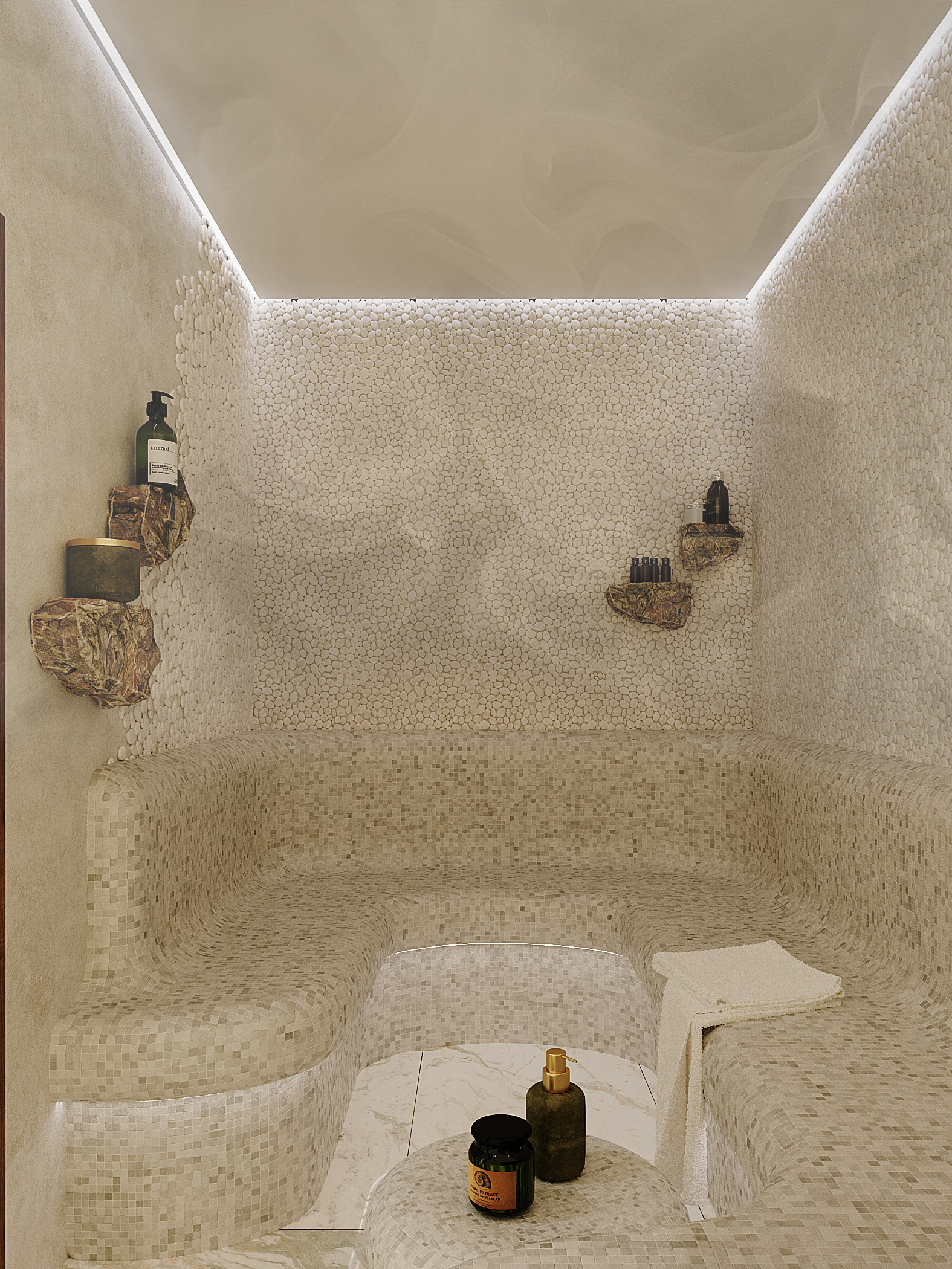 Хамам зона в гостевом доме часть проекта design: Горинова Дарья bauwou.design.studio darya_gorinova bauwou.ru visualisation: SILINSKAYA [3D-визуализация] Software Used: 3dsmax / Chaos Corona